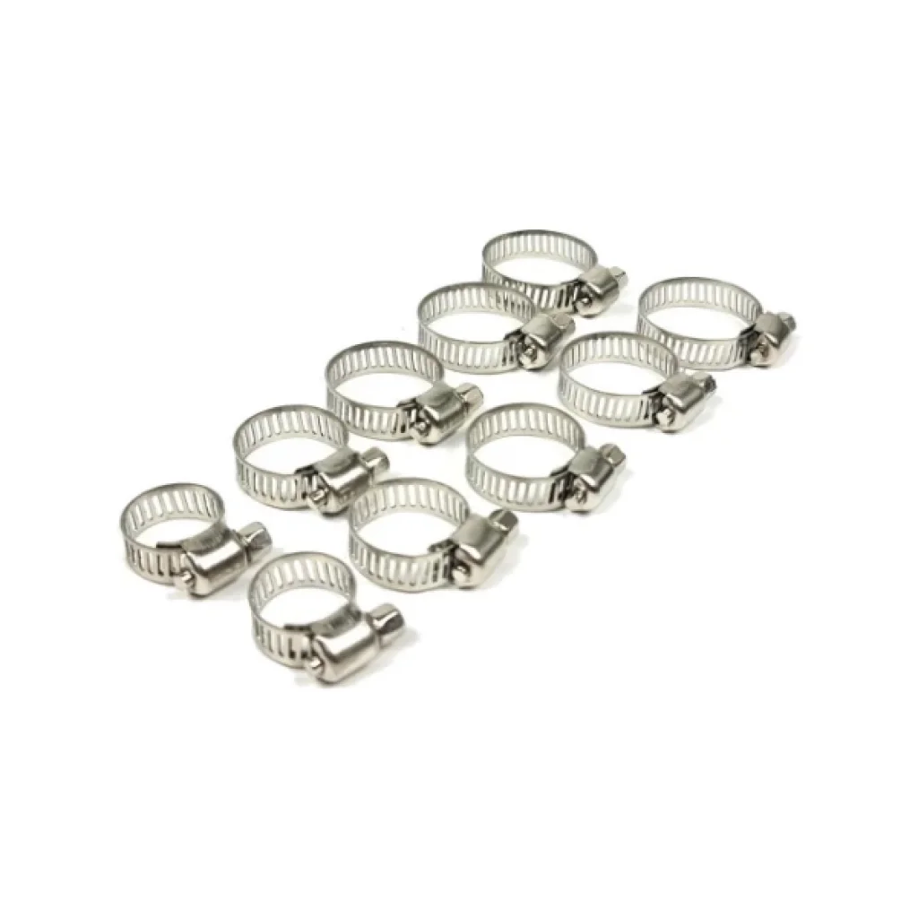 10 PARÇA HORTUM KELEPÇESİ SETİÜrün Özellikleri10 parça hortum kelepçesi seti, farklı çaplara sahip hortumların boru uçlarına sıkıca sabitlenmesi için kullanılır. Su, hava veya yağ hatlarında sıklıkla tercih edilen bu set, çeşitli boyutlardaki hortumlara uyum sağlar. Setin içinde 10 adet kelepçe yer alır, 2 adet 8–18 mm, 2 adet 11–20 mm, 2 adet 13–23 mm, 2 adet 14–27 mm, 2 adet 18–25 mm ve her biri yüksek basınç altında güvenli bağlantılar sağlar. Galvaniz kaplı çelik veya paslanmaz çelikten üretilen hortum kelepçeleri, uzun ömürlü ve paslanmaya karşı dayanıklıdır. Kullanımı oldukça kolay olup, tornavida ile sıkılıp gevşetilebilir.Paket İçeriği1 adet 10 Parça Hortum Kelepçesi Seti