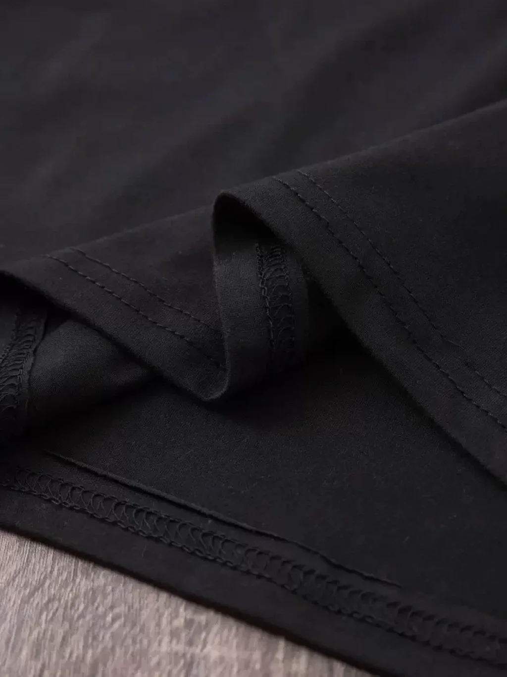20/1 Penye Compack Baskılı Oversize Bisiklet Yaka Kısa Kol Yazlık T-shirt - Siyah