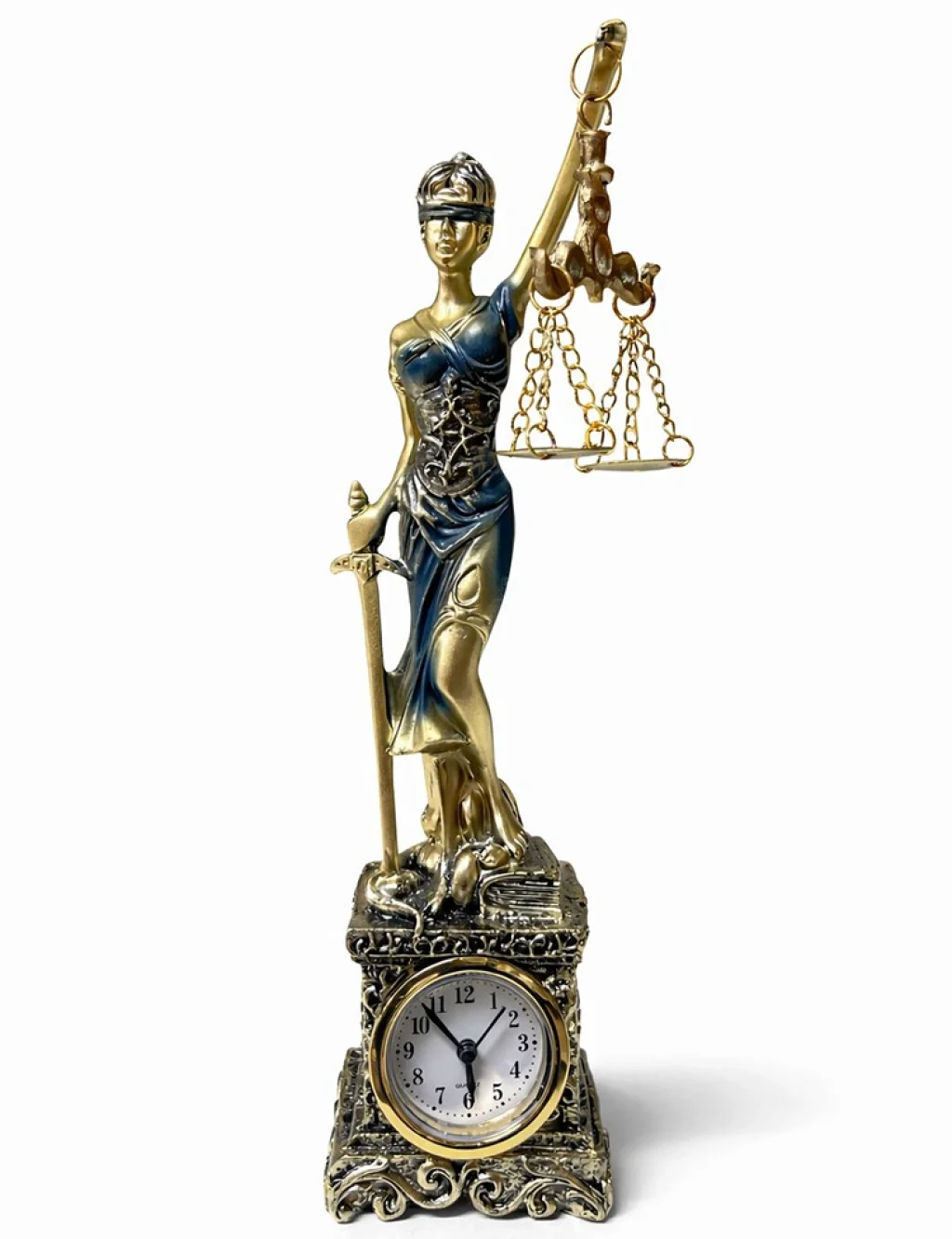26X7 CM POLYESTER SAATLİ ADALET FİGÜRÜ Ürün ÖzellikleriPolyester Saatli Adalet Figürü, klasik adalet sembolünü dekoratif saat tasarımı ile birleştiren şık ve dikkat çekici bir masa aksesuarıdır. 26x7 cm ölçüsündeki uzun ve zarif formu sayesinde ofis masası, kitaplık ve danışma alanlarında estetik bir görünüm sunar. Üst bölümde yer alan terazi tutan adalet figürü detayı ile güçlü bir adalet sembolü vurgusu oluştururken, alt kısmında bulunan saat bölümü ürüne işlevsellik kazandırır. Hem dekoratif hem kullanışlı yapısıyla masa üstünde prestijli bir duruş sergiler. Dayanıklı polyester malzeme yapısı sayesinde uzun ömürlü kullanım sunar. Hukuk büroları, avukat ofisleri ve kurumsal çalışma alanları için anlamlı bir ofis dekor ürünü ve hediye alternatifi olarak tercih edilebilir.Ürün Teknik Özellikleri Özellik Açıklama Ürün Adı Polyester Saatli Adalet Figürü 26x7 Cm Malzeme Polyester Ölçü 26 x 7 cm Tasarım Adalet figürü ve entegre masa saati Kullanım Alanı Ofis, hukuk bürosu, masa üstü dekorasyon Paket İçeriği1 adet Polyester Saatli Adalet Figürü (26x7 cm)