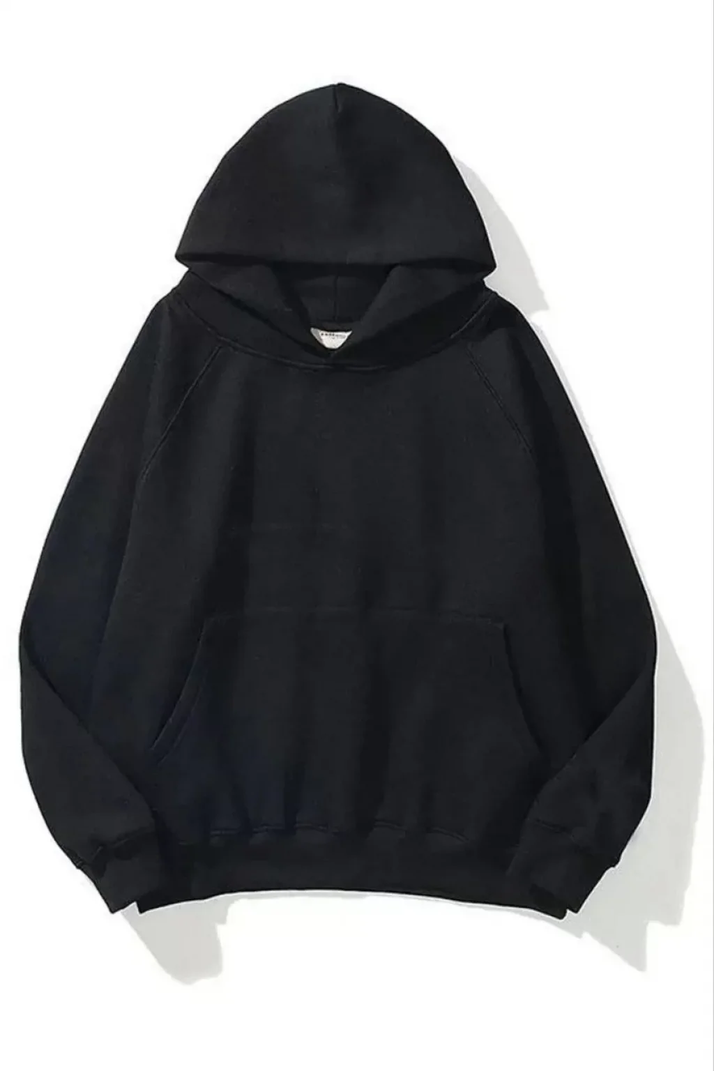 3 İplik Pamuklu Unisex Kapşonlu Sweetshirt - Siyah