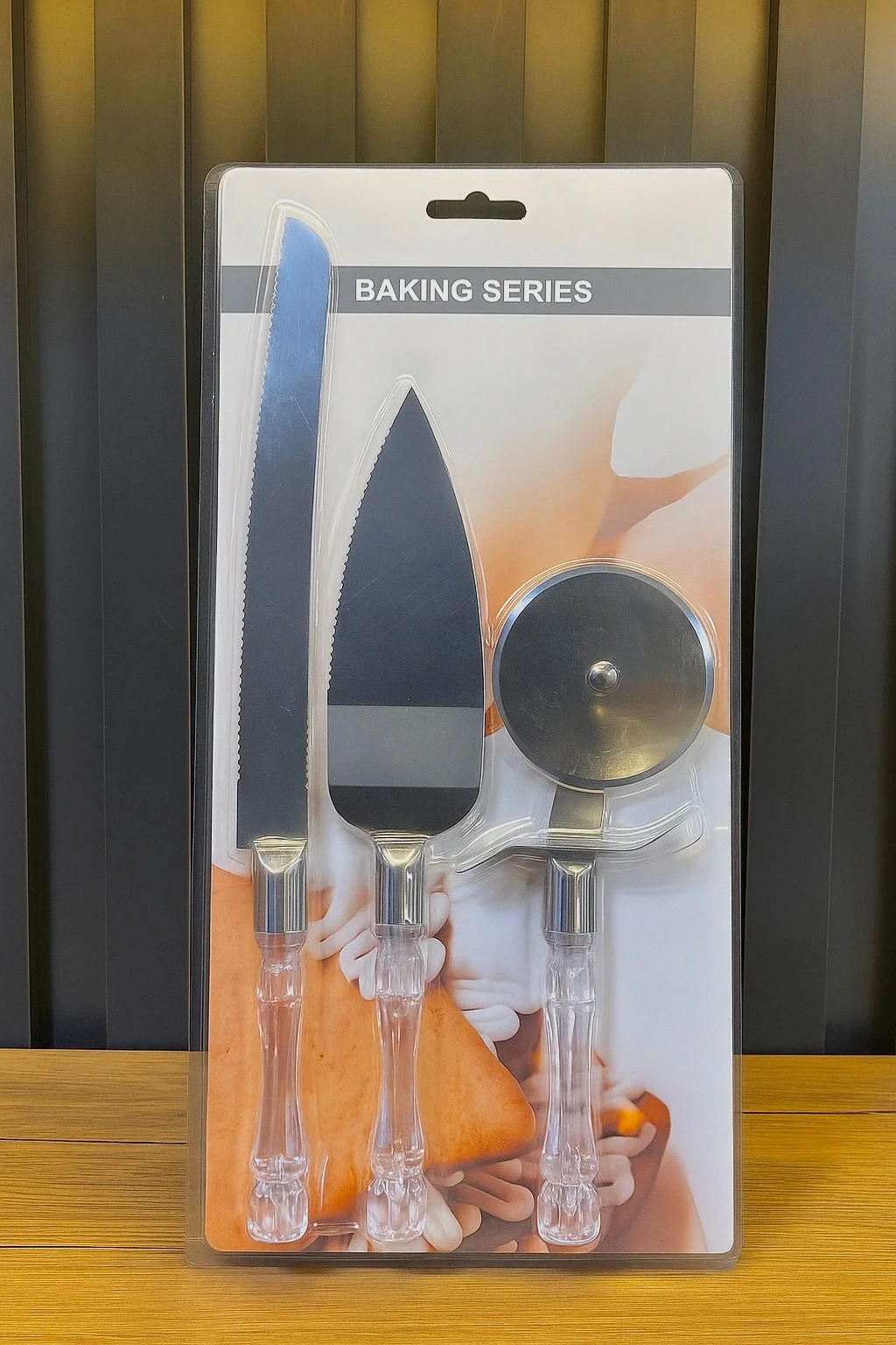 3 PARÇA SERVİS SETİÜrün Özellikleri3 Parça Servis Seti, şeffaf sap tasarımı ve paslanmaz metal yüzeyleriyle mutfakta estetik ve fonksiyonel kullanım sunar. Pizza kesme aparatı, uzun servis bıçağı ve geniş spatula içeren bu set; pizza, börek, pasta, kek ve tatlı servislerinde kesim ve sunumu kolaylaştırır. Keskin dişli bıçak pizza dilimlerini dağılmadan kesmenizi sağlarken spatula, dilimleri düzgün şekilde tabağa aktarmanıza yardımcı olur. Yuvarlak pizza kesici ise hamur ve pizza tabanlarında pratik kullanım imkânı sunar. Şeffaf sap detayları sofralarda zarif bir görünüm oluştururken dayanıklı yapısı uzun süreli kullanım sağlar. Günlük mutfak hazırlıklarından özel davet ve organizasyonlara kadar her ortamda kullanıma uygundur ve hijyenik ambalajıyla teslim edilir.Paket İçeriği1 Adet Pizza Kesici1 Adet Dişli Bıçak1 Adet Servis Spatulası