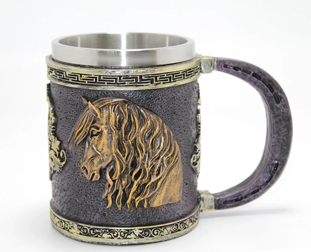 3D Kabartmalı At Büstü Paslanmaz Çelik Kupa Bardak