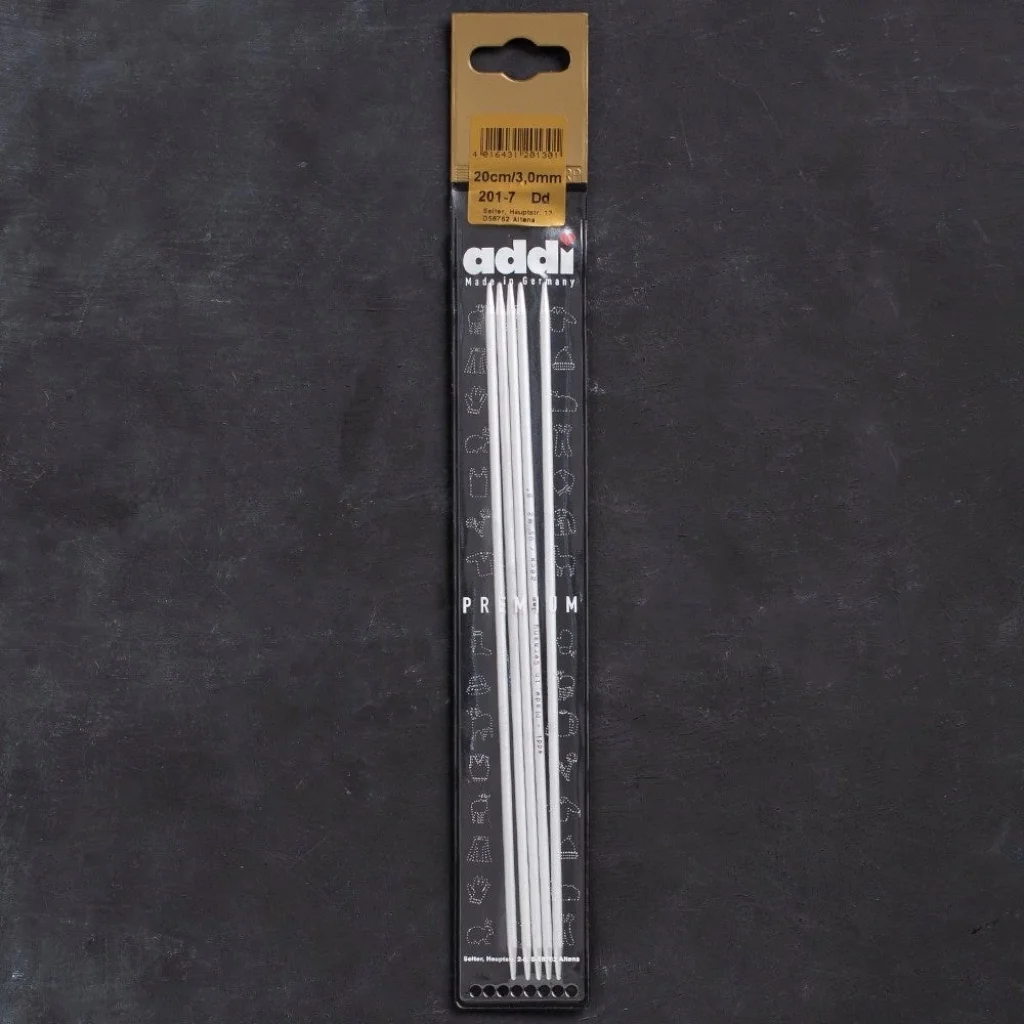 Addi'nin 201-7 serisi, çift uçlu ve yüksek kaliteli çorap şişleridir. Parlak gri alüminyumdan üretilmiştir, hafif ve örmesi kolaydır. Şiş boyu 20 cm'dir.