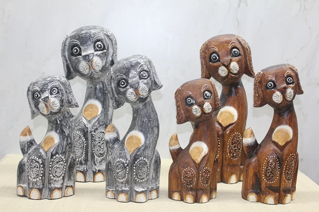 AHŞAP 3'LÜ KÖPEK SETİÜrün ÖzellikleriAhşap 3'lü Köpek Seti, doğal ahşap malzeme ile üretilmiş olup, şık ve estetik bir görünüm sunar. Setin içerisinde 26 cm, 32 cm ve 40 cm boyutlarında 3 köpek figürü yer alır. Her bir figür, detaylı işçilikle tasarlanmış ve ev dekorunuza zarif bir dokunuş katacak şekilde hazırlanmıştır. Hem ofis hem de ev dekorasyonunda kullanılabilir, şıklığıyla dikkat çeker.Paket İçeriği1 Adet Ahşap 3'lü Köpek Seti