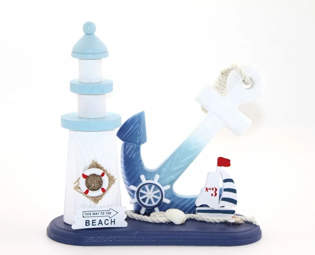 AHŞAP MARİN ÇAPALI DENİZ FENERİÜrün ÖzellikleriAhşap marin çapalı deniz feneri, deniz temalı dekorasyonun vazgeçilmez bir parçasıdır. 20x20 cm boyutlarında olan bu şık obje, beyaz ve mavi renk tonlarıyla estetik bir görünüm sunar. Çapa, deniz feneri, gemi pervanesi ve halkalarla zenginleştirilmiş tasarımıyla, hem evde hem ofiste kullanılabilir. Dayanıklı ahşap malzeme ile üretilmiş olup, deniz atmosferi yaratır.Paket İçeriği1 Adet Ahşap Marin Çapalı Deniz Feneri