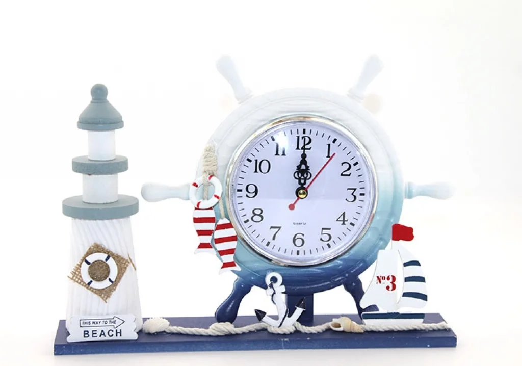 Ahşap Marin Deniz Feneri Dümenli Saat