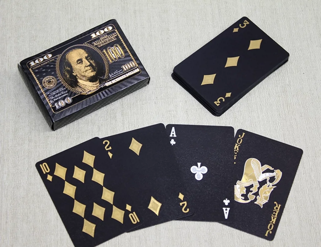 Altın Dolar Tasarımlı Siyah İskambil Oyun Kartı