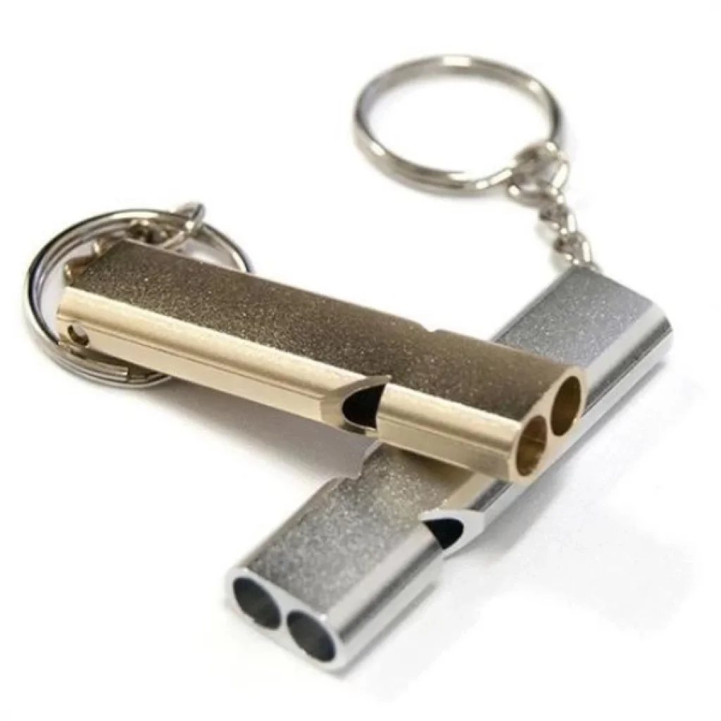 ALÜMİNYUM SOS DÜDÜK ANAHTARLIKÜrün ÖzellikleriYüksek ses gücü ve dayanıklı yapısıyla Alüminyum SOS Düdük Anahtarlık, doğa yürüyüşlerinden kamp aktivitelerine, spor etkinliklerinden acil durumlara kadar her ortamda güvenle kullanılabilir. Kompakt boyutu sayesinde anahtarlık olarak kolayca taşınabilir ve her an ulaşılabilir durumda olur. Paslanmaz çelik ve alüminyum alaşım malzeme yapısı, uzun ömürlü kullanım sunarken suya ve zorlu hava koşullarına karşı da dayanıklıdır.Acil durumlarda 150 desibele kadar ses çıkarabilen bu düdük, yardım çağrısı yapmak için mükemmeldir. Ayrıca evcil hayvan eğitimi, açık hava sporları, kamp, yürüyüş ve dağcılık gibi aktivitelerde de rahatlıkla kullanılabilir. Pürüzsüz yüzeyi ve ergonomik tasarımı sayesinde elde rahat tutuş sağlar ve kolay üfleme imkânı sunar.Hafif tasarımı (10 gram) sayesinde cebinizde, çantanızda veya kemerinizde fark edilmeden taşınabilir. Şık metalik rengiyle hem işlevsel hem de estetik bir görünüme sahiptir.Paket İçeriği1 adet Alüminyum SOS Düdük Anahtarlık