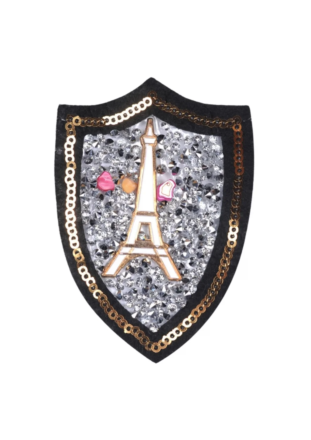 Aplike Ütü İle Yapışan Taşlı Eyfel Kulesi Beyaz Arma 6 cm
