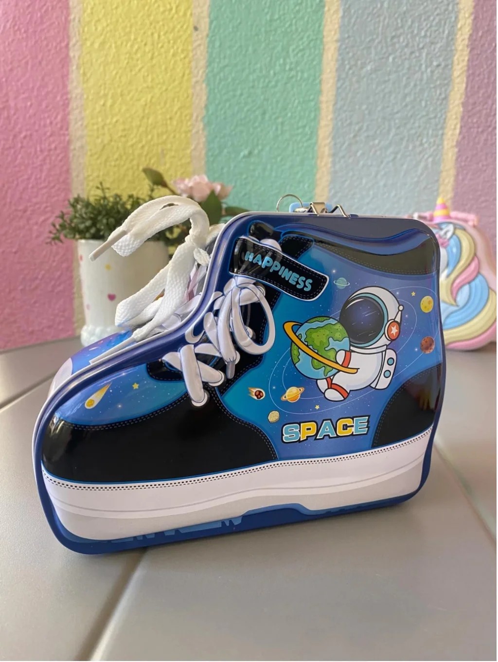 AYAKKABI TASARIMLI KUMBARA“Adım Adım Tasarrufa!”Ayakkabı Tasarımlı Kumbara, çocuklarınızın tasarruf etmeyi öğrenmesi için eğlenceli ve yaratıcı bir yol sunar. Şirin ayakkabı tasarımı, çocukların dikkatini çekerken, onları para biriktirmeye teşvik eder. Kilitli yapısı sayesinde, biriktirilen paraların güvenliği sağlanır. Kaliteli plastik malzemeden üretilmiş olup, dayanıklılığı ve uzun ömürlü kullanımı ile öne çıkar. Bu kumbara, hem dekoratif bir aksesuar olarak odalara renk katar hem de tasarruf alışkanlığı kazandırır.Stok durumuna göre karışık renklerde gönderilecektir.Özellikler: • Eğlenceli ve yaratıcı ayakkabı tasarımı • Kilitli mekanizma ile güvenli kullanım • Kaliteli plastik malzeme • Çocuklara tasarruf alışkanlığı kazandırma • Dekoratif ve işlevsel