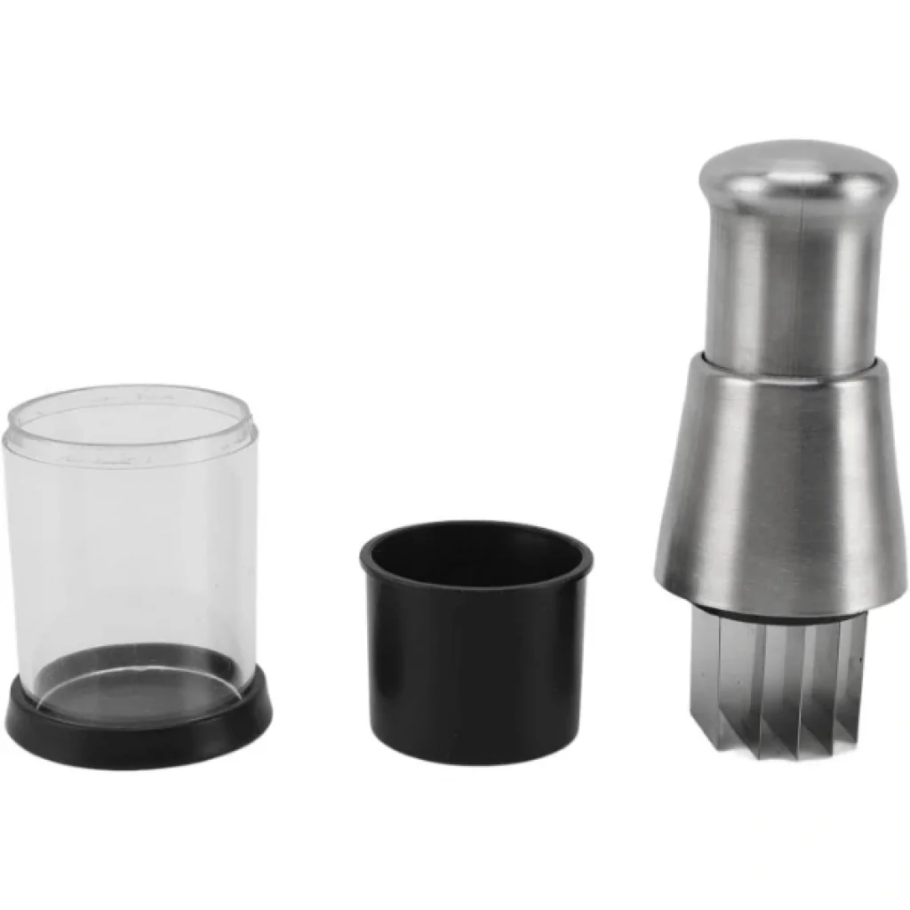 BASMALI SARIMSAK EZİCİÜrün ÖzellikleriMutfakta pratikliği ve hızı bir araya getiren Basmalı Sarımsak Ezici, ergonomik tasarımı sayesinde kullanımı son derece kolay bir mutfak yardımcısıdır. Sadece birkaç basit hareketle sarımsakları, zencefili veya küçük baharatları kısa sürede ezerek yemek hazırlıklarınızı çok daha keyifli hale getirir. Basmalı mekanizması, el gücü gerektirmeden yüksek verim sağlar ve el temasını minimuma indirir.Yüksek kaliteli paslanmaz çelik bıçakları uzun ömürlü kullanım sunarken, şeffaf haznesi sayesinde ezilen malzemeyi anlık olarak görebilirsiniz. Kompakt boyutu ile mutfak çekmecelerinde az yer kaplar ve kolayca temizlenir. Ezme işlemi sonrası haznesini ayırarak su altında hızlı bir şekilde durulamak yeterlidir.Dayanıklı malzemesi, sık kullanımda dahi performansını korur. Hem profesyonel mutfaklarda hem de ev kullanımında güvenle tercih edilebilir.Paket İçeriği1 adet basmalı sarımsak ezici