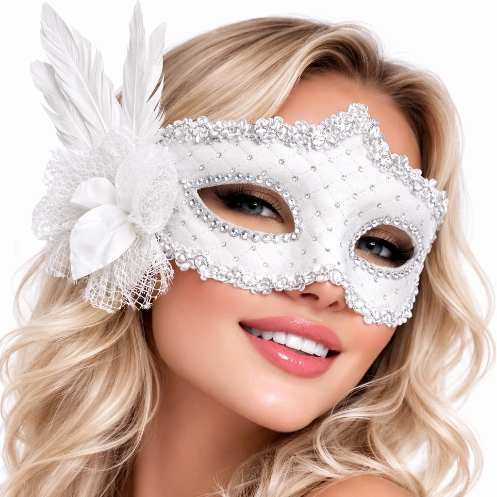 Beyaz Tüylü Venedik Lüks Balo Maskesi