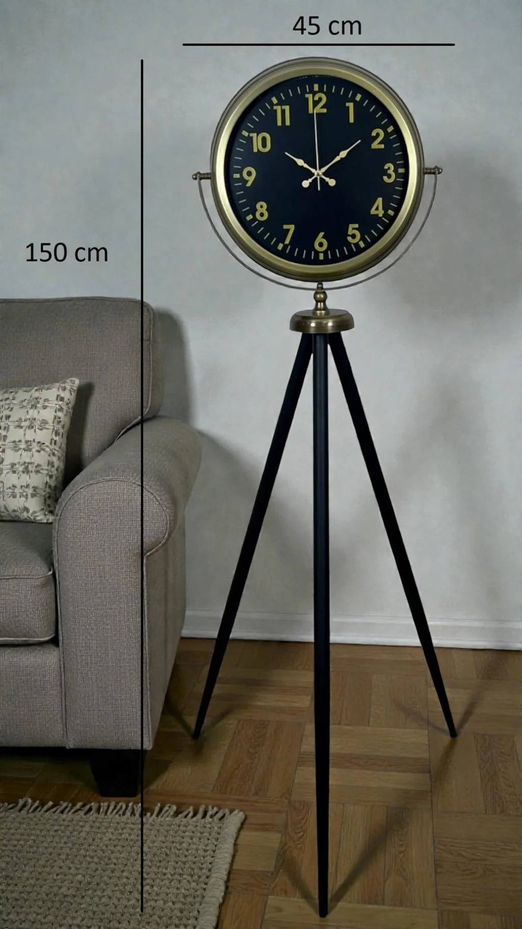✅ Tripod Ayaklı Dekoratif Yer Saati: Zeminde dengeli durur; dekoru zenginleştirir.