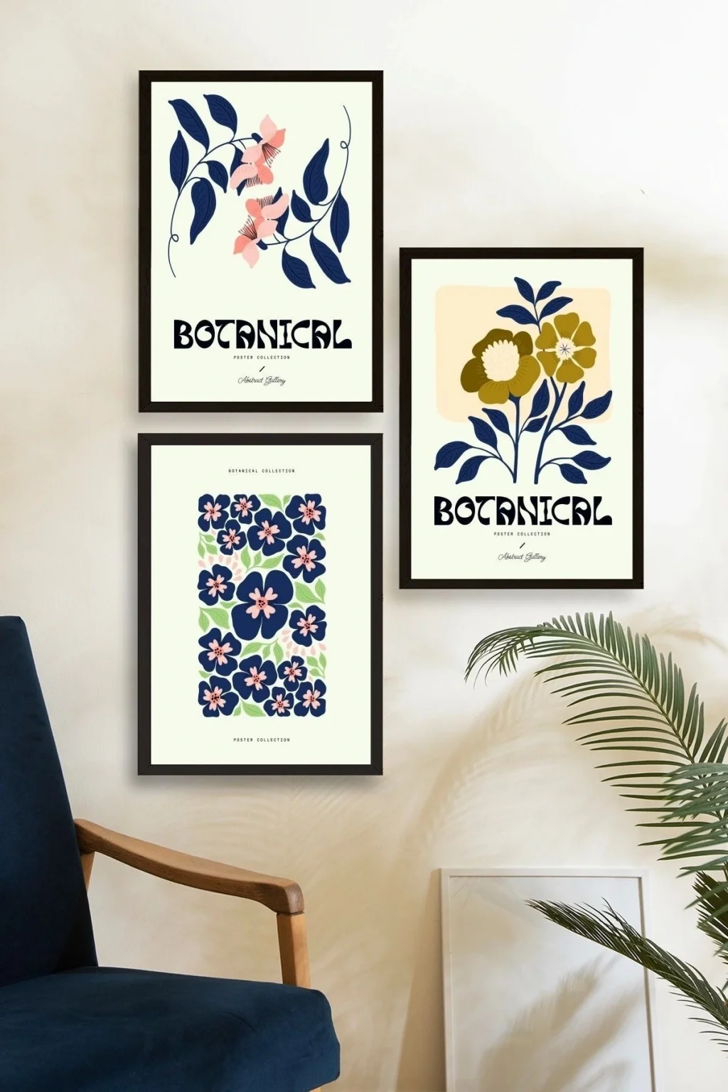 Botanik Üçlü Ahşap Çerçeveli Tablo