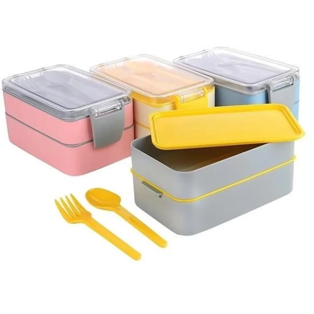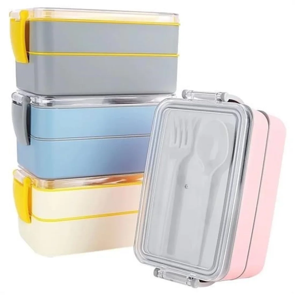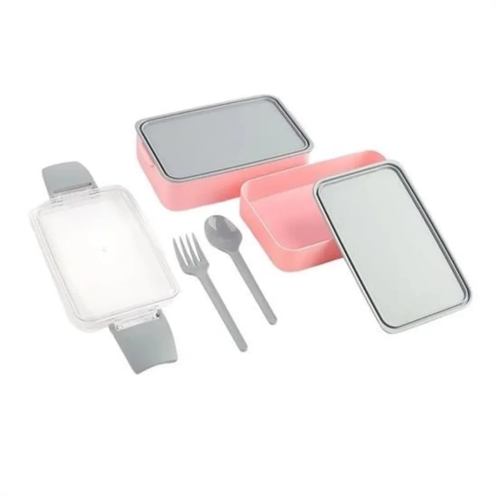 BUFFER® 2 Bölmeli Çok Amaçlı 900 ml Kapasiteli Çatal Kaşıklı Dayanıklı Beslenme Kabı Yiyecek Kutusu