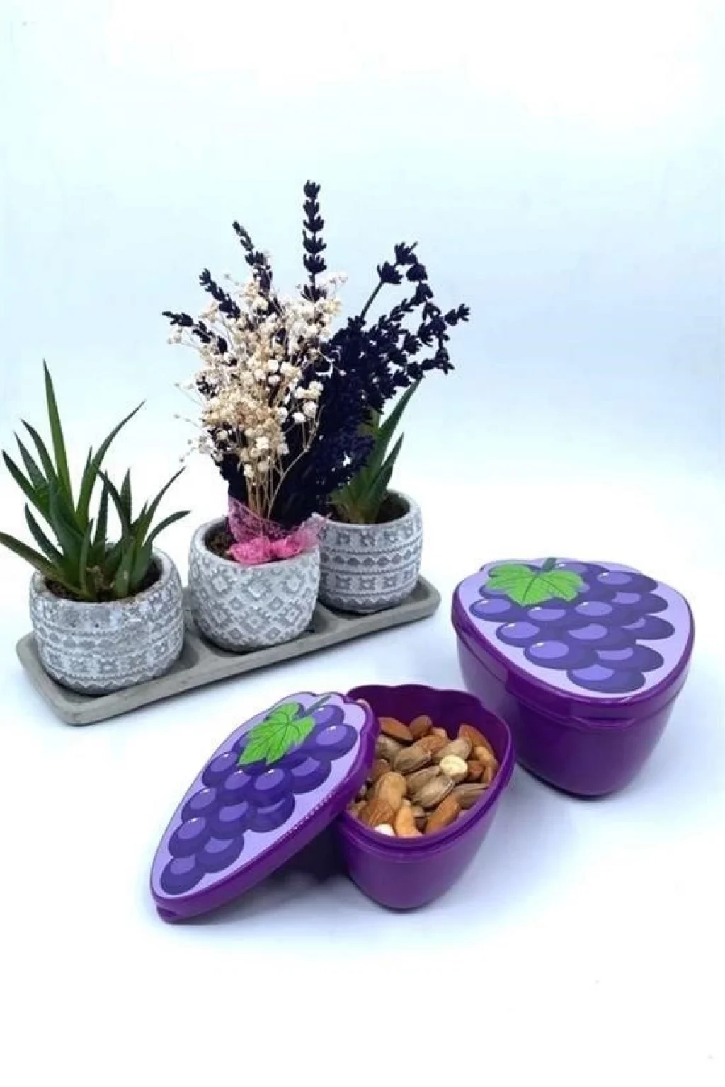 2'li İç İçe Geçebilen Üzüm Model Saklama ve Beslenme Kabı Seti (550 ml + 250 ml)