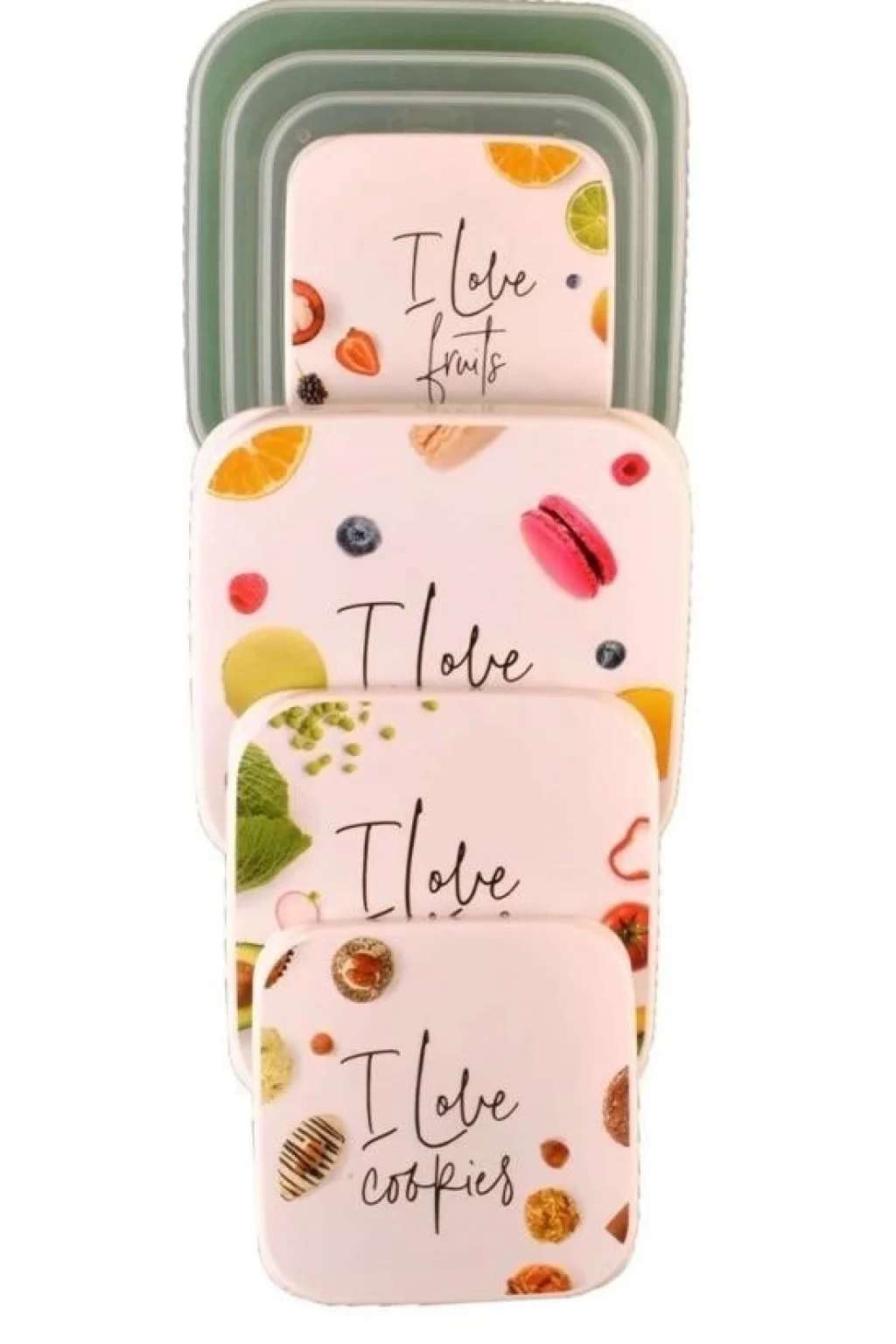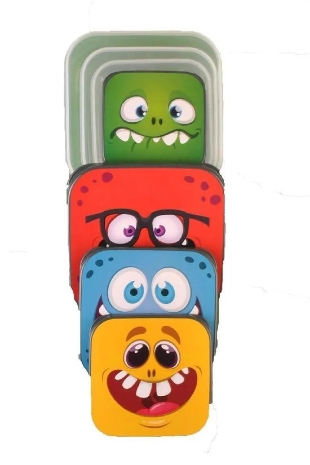 Son derece sempatik tasarımlı kapaklara sahip iç içe saklanabilen 4 farklı boyda saklama kaplarını çok seveceksiniz