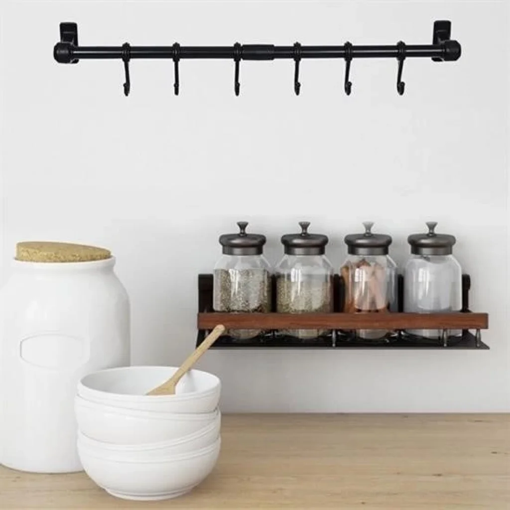 Buffer Duvara Monte Edilen 6 Kancalı Dekor Kaşıklık ve Kupa Askısı