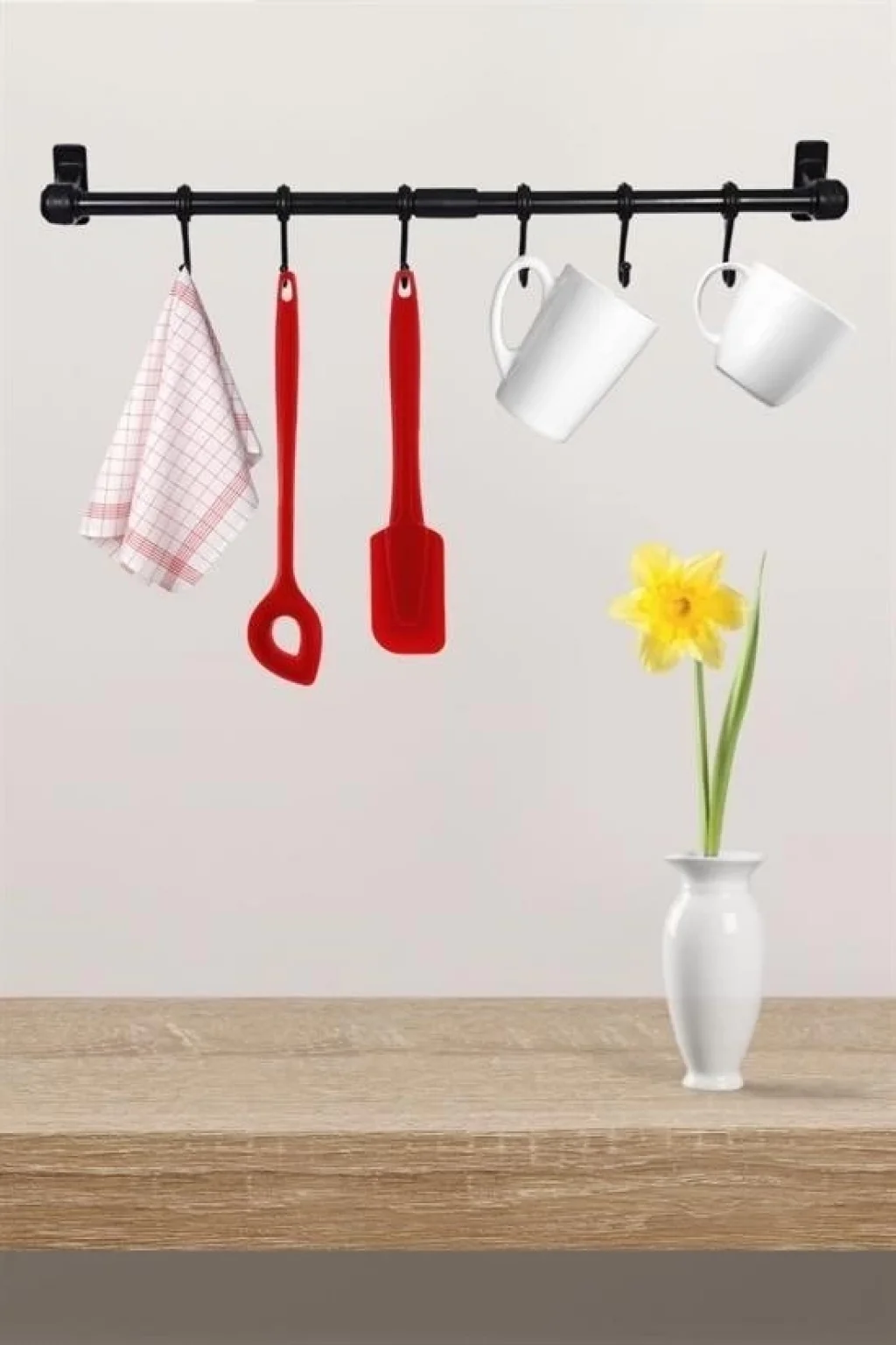 Siyah askı ve 6 adet kanca setinden oluşan bu ürün, hem mutfağınızda çok şık duracak hem de sürekli kullanabileceğiniz bir ürün olacakPratik bir şekilde her daim elinizin altında ve gözünüzün önünde olacak bu ürün mutfağınızın şıklığına şıklık katacak 6 kancadan oluşan ve duvara monte edilebilen ürüne servis kaşıklarınızı, kupalarınızı, muglarınızı, kahve ve çay fincanlarınızı , mutfak havlularınızı, mutfak bezlerinizi asabilirsiniz