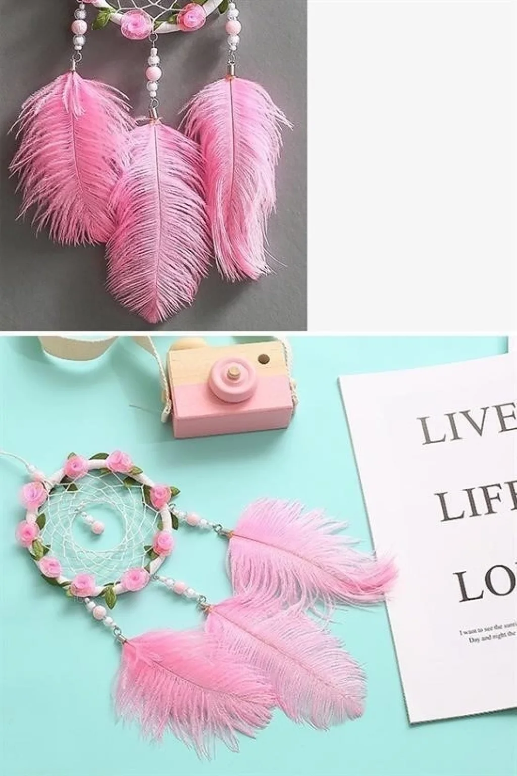 El Yapımı Kuş Tüyü Ve Led Işıklı Düş Kapanının ucundaki kuş tüyleri ve led aydınlatması ile dekorasyonunuzu tamamlayacak parçalardan olacaktır