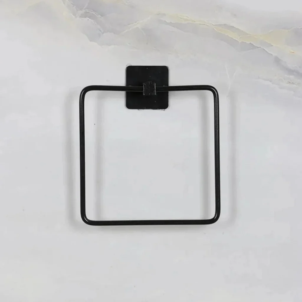Kendiliğinden yapışkanlı siyah paslanmaz metal kare havluluk, şıklık ve işlevselliği bir arada sunarak, kullanıcılarına havlu saklama konusunda pratik bir çözüm sunar. Modern tasarımıyla dekorunuza uyum sağlar ve kullanım kolaylığı sağlar.