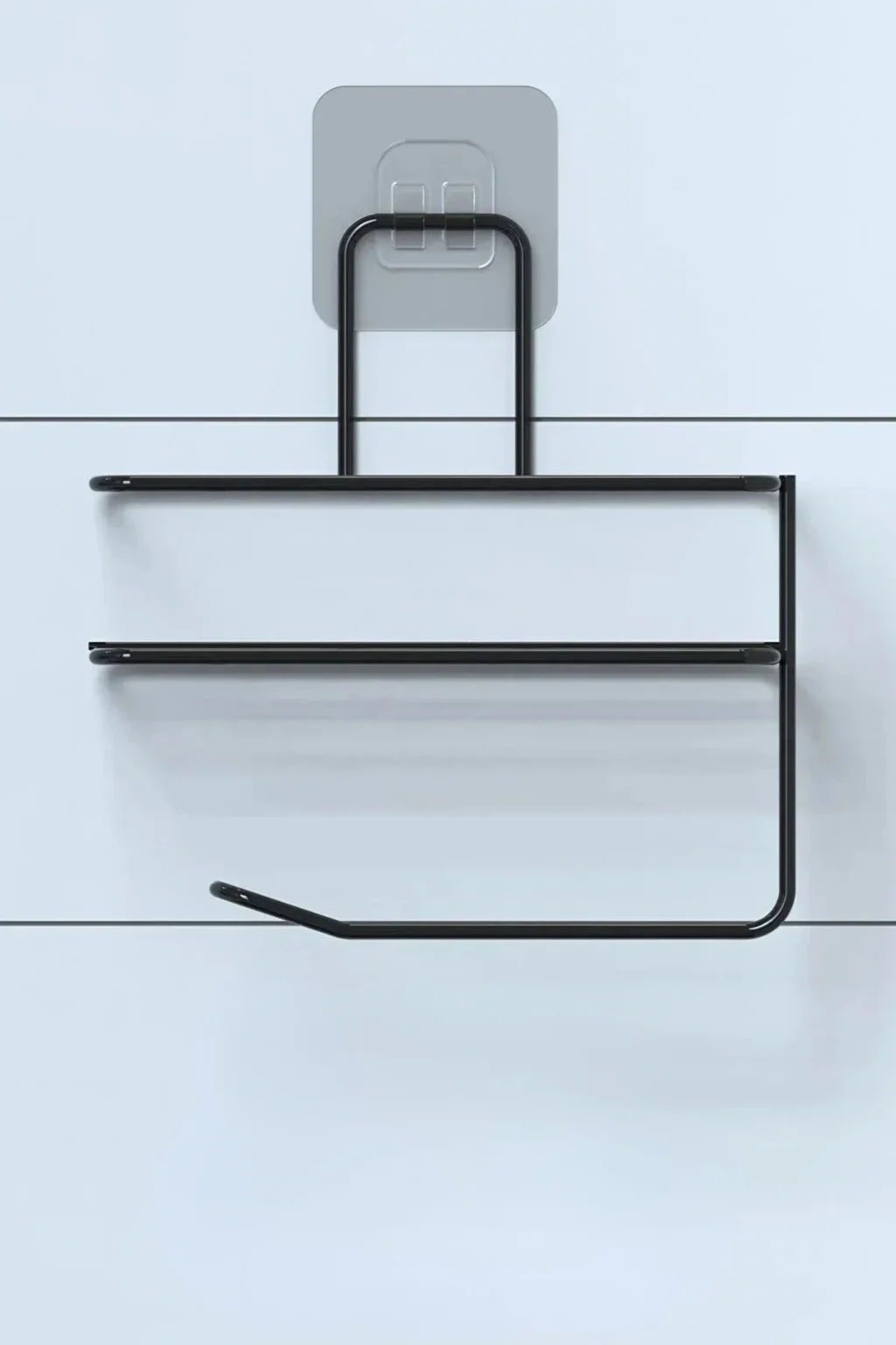 Yapışkanlı Tuvalet Kağıdı Tutacağı ve Yedek Raf, banyonuzda hem pratikliği hem de modern tasarımı bir araya getirir. Şık siyah metal tasarımıyla banyo dekorasyonunuza estetik bir dokunuş katarak fonksiyonel bir kullanım sunar.
