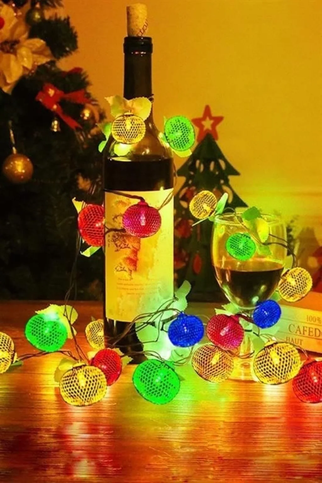 2 Metre Metal Örgülü 4 Renkli Mini Top Pilli Led Işık Zinciri