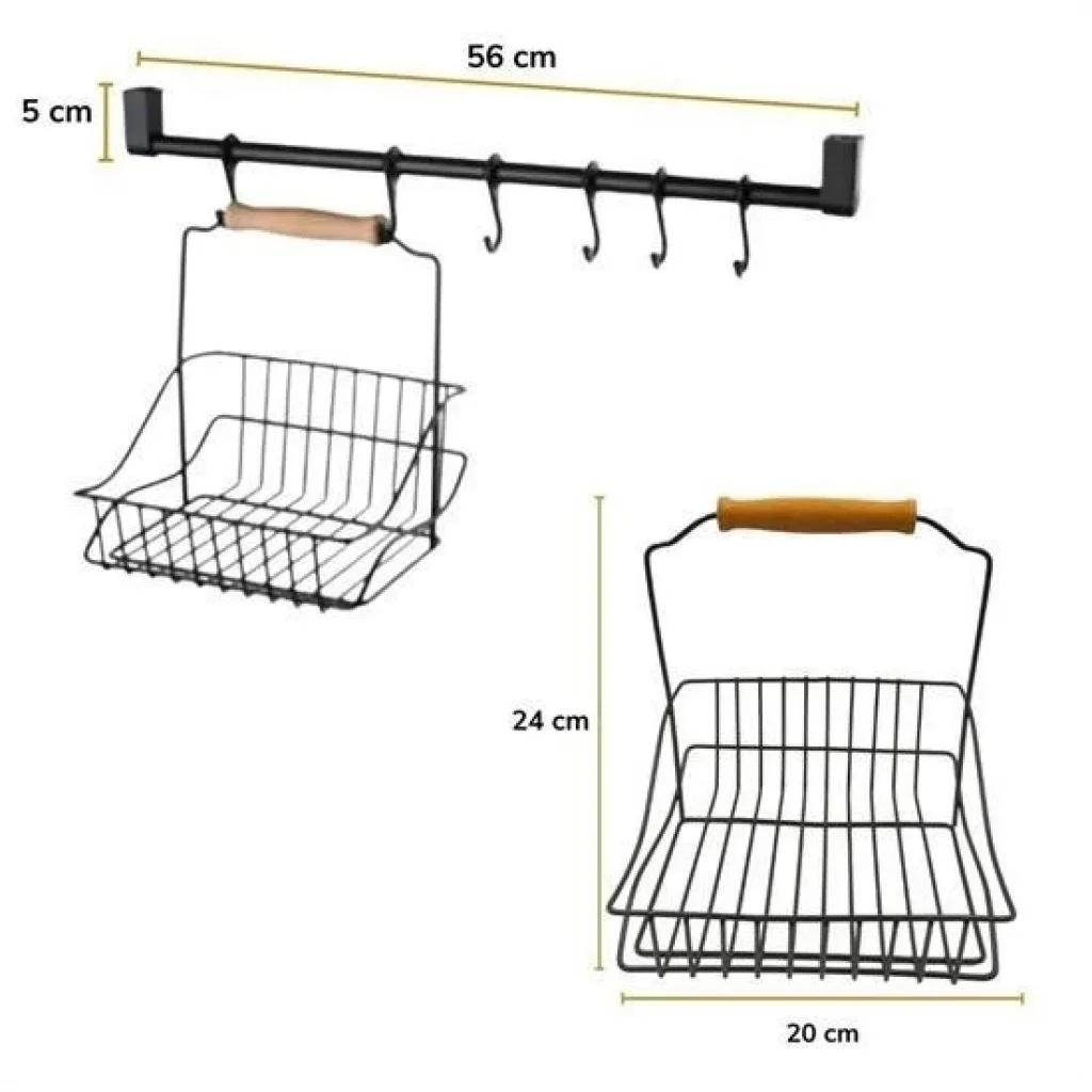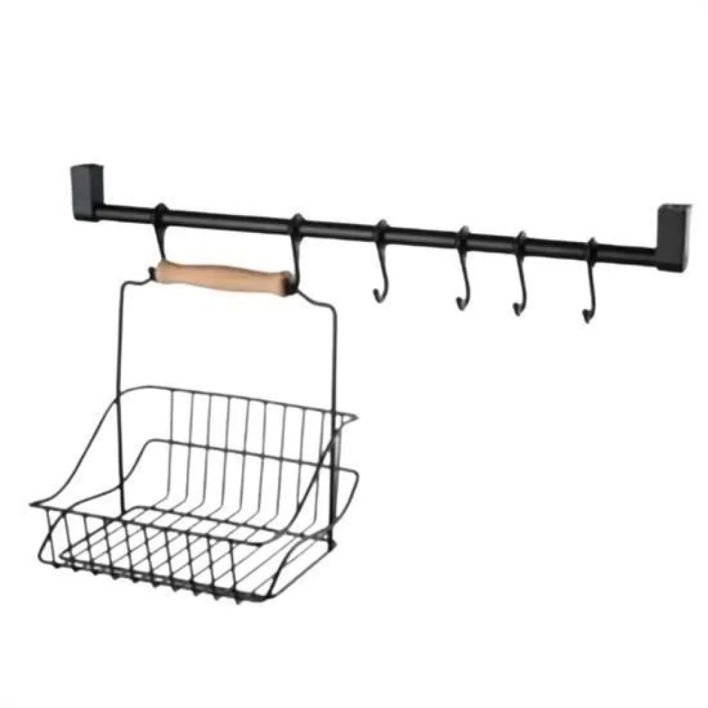 Ahşap kulplu retro mutfak düzenleyici askılı sepet
