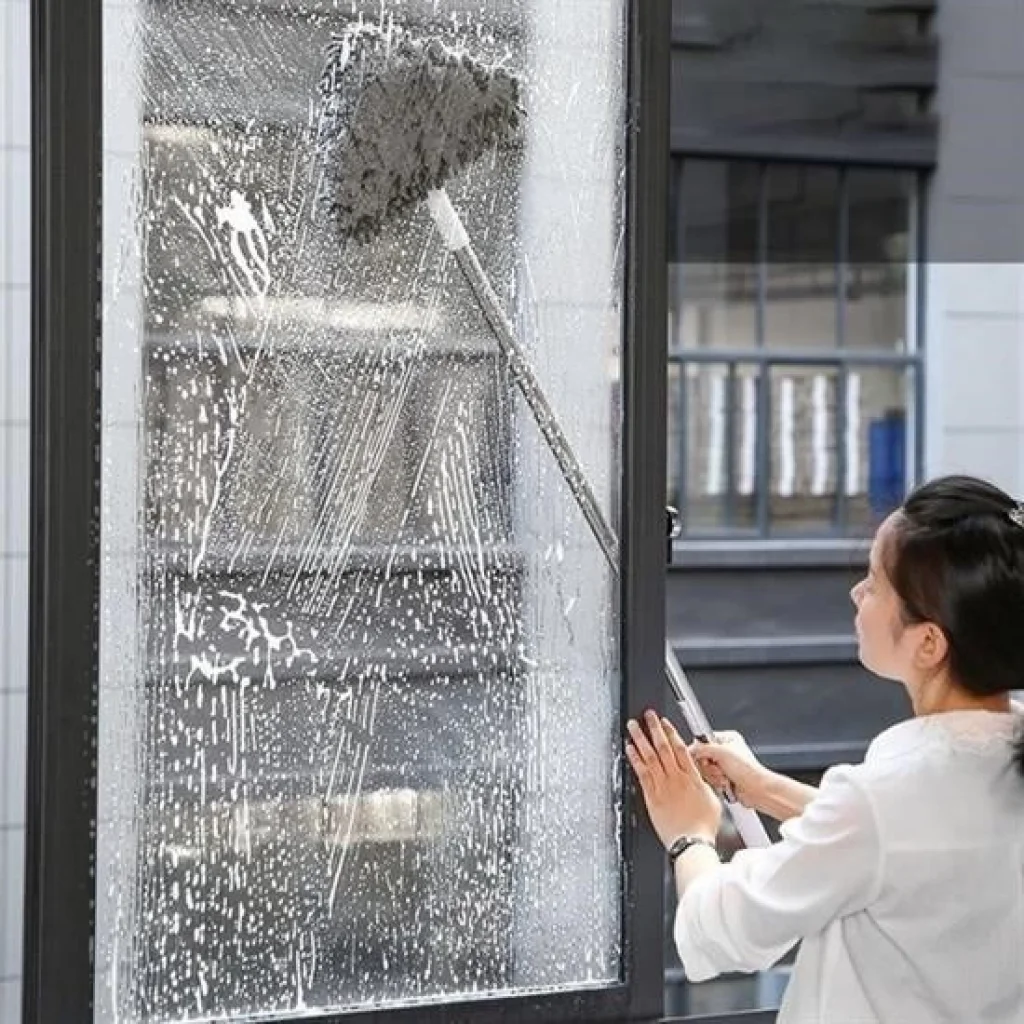 Özel mikrofiber bezi ve çekpası sayesinde cam temizliği yapmak artık çok kolay Üçgen başlık tasarımı 360 derece hareket edebilir, tüm köşeleri el değmeden temizleyebilir, kurulayabilirsiniz