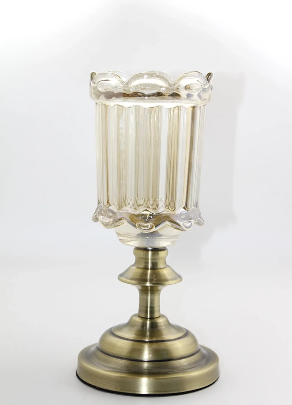 CAM ŞAMDAN TEKLİ MODEL 5Ürün ÖzellikleriZarif bir tasarıma sahip olan bu cam şamdan, altın detayları ve şık yapısıyla dikkat çeker. Hem modern hem de klasik dekorasyonlara uyum sağlar. Sadece şamdan olarak değil, estetik bir dekoratif obje olarak da kullanılabilir. Dayanıklı cam malzemeden üretilmiştir, uzun ömürlü kullanım sağlar. İster evde, ister ofiste kullanabileceğiniz bu şamdan, sofistike bir atmosfer yaratır.Paket İçeriği1 Adet Cam Şamdan Tekli Model 5