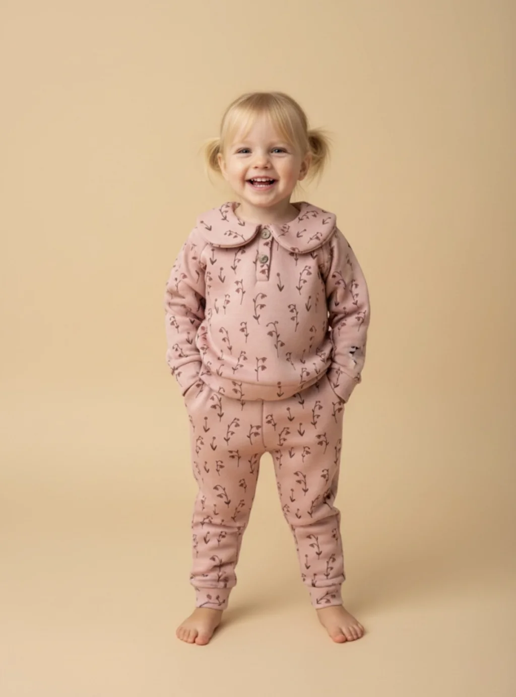 Çiçek Baskılı Bebe Yaka Kız Çocuk Takımı
