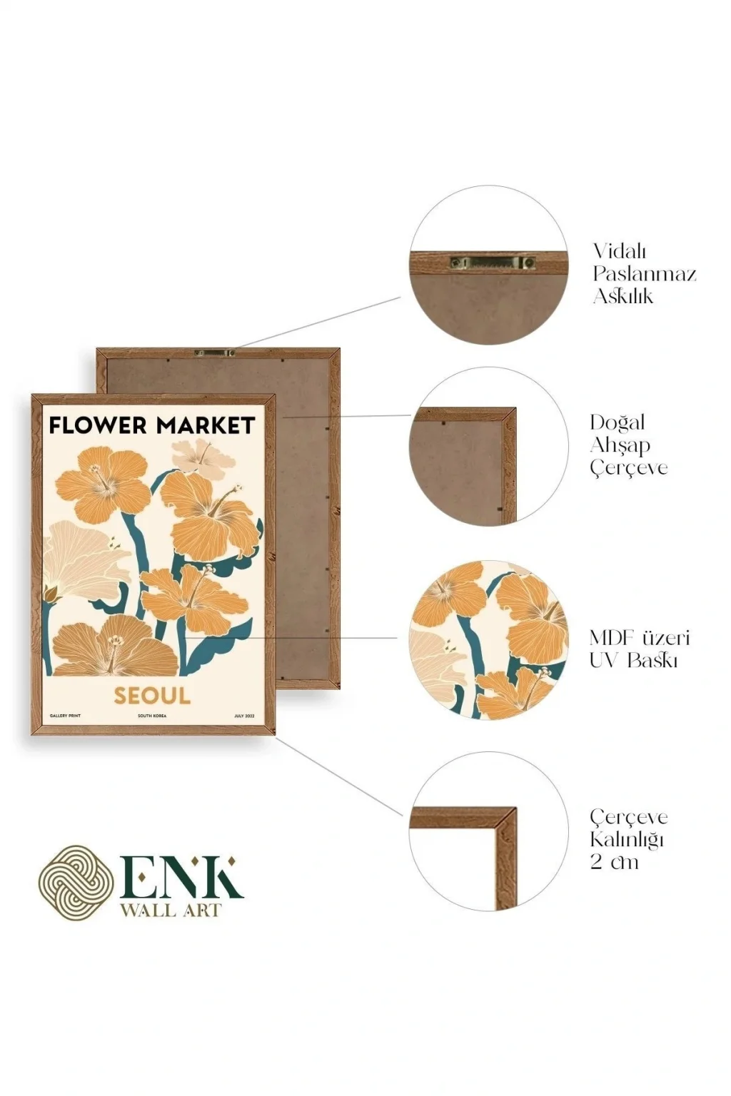 Çiçek Pazarı Ahşap Çerçeveli Tablo