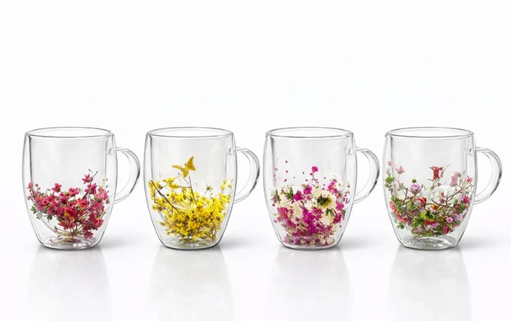 Çift Camlı Çiçekli Borosilikat Kupa Bardak