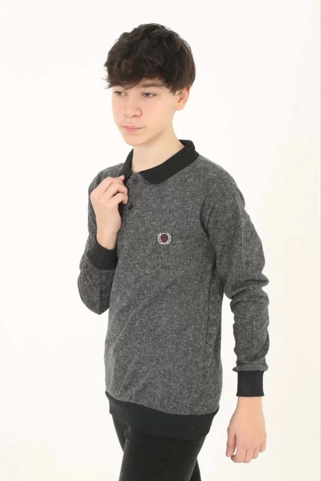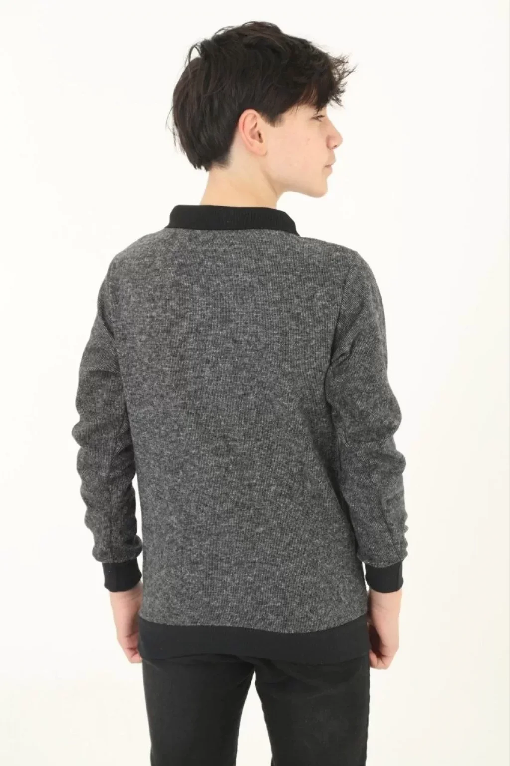 Çocuk Selanik Yaka Nakışlı Kazak - Gri