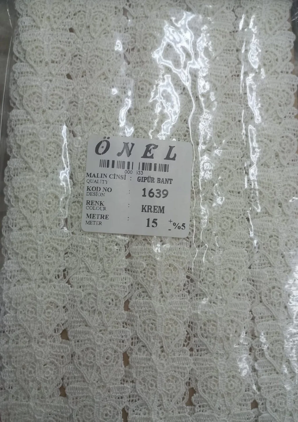 Dantel Polyester Güpür Bant Krem 15 Metre En 6 cm ON-1639-KR
