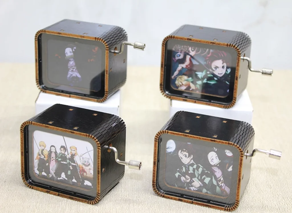 DEMON SLAYER MÜZİK KUTUSUÜrün ÖzellikleriDemon Slayer temalı bu müzik kutusu, sevilen anime karakterlerinin görselleriyle süslenmiş özel bir tasarıma sahiptir. 6x6 cm boyutundaki kompakt yapısı sayesinde dekoratif olarak kullanılabilir veya koleksiyonluk olarak saklanabilir. Mekanik kurmalı mekanizması ile nostaljik bir melodi çalar. Ahşap dış yüzeyi ve lazer kesim detaylarıyla hem estetik hem dayanıklı bir yapıya sahiptir. Anime tutkunları için ideal bir hediye seçeneğidir.Paket İçeriği1 adet Demon Slayer temalı müzik kutusu