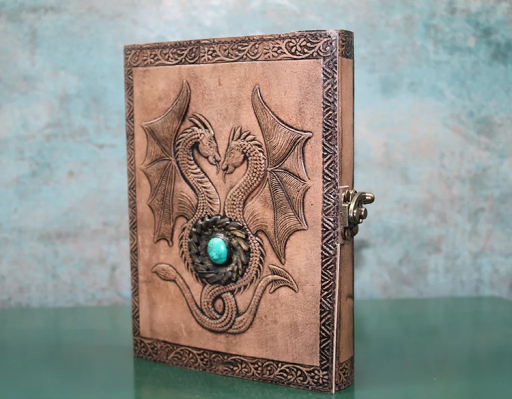 DERİ DEFTER MODEL 1Ürün ÖzellikleriDeri Defter Model 1, ejderha işlemeli ve taşlı tasarımıyla dikkat çeken şık bir defterdir. Deri kapak üzerine işlenmiş ejderha figürü, güç ve kudreti simgelerken, taşlar estetik bir dokunuş katmaktadır. 21x16 cm ölçülerindeki büyük boyutu, yazmak için geniş bir alan sunar ve rahat kullanım sağlar. Hem kişisel kullanım hem de hediye olarak mükemmel bir tercihtir. Bu defter, sanatsal işçilik ve zarif detaylarla her ortama şıklık katmaktadır.Paket İçeriği1 adet Deri Defter Model 1.