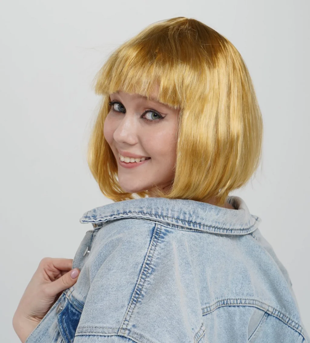 Düz Kesim Küt Parti Peruğu Altın Renk