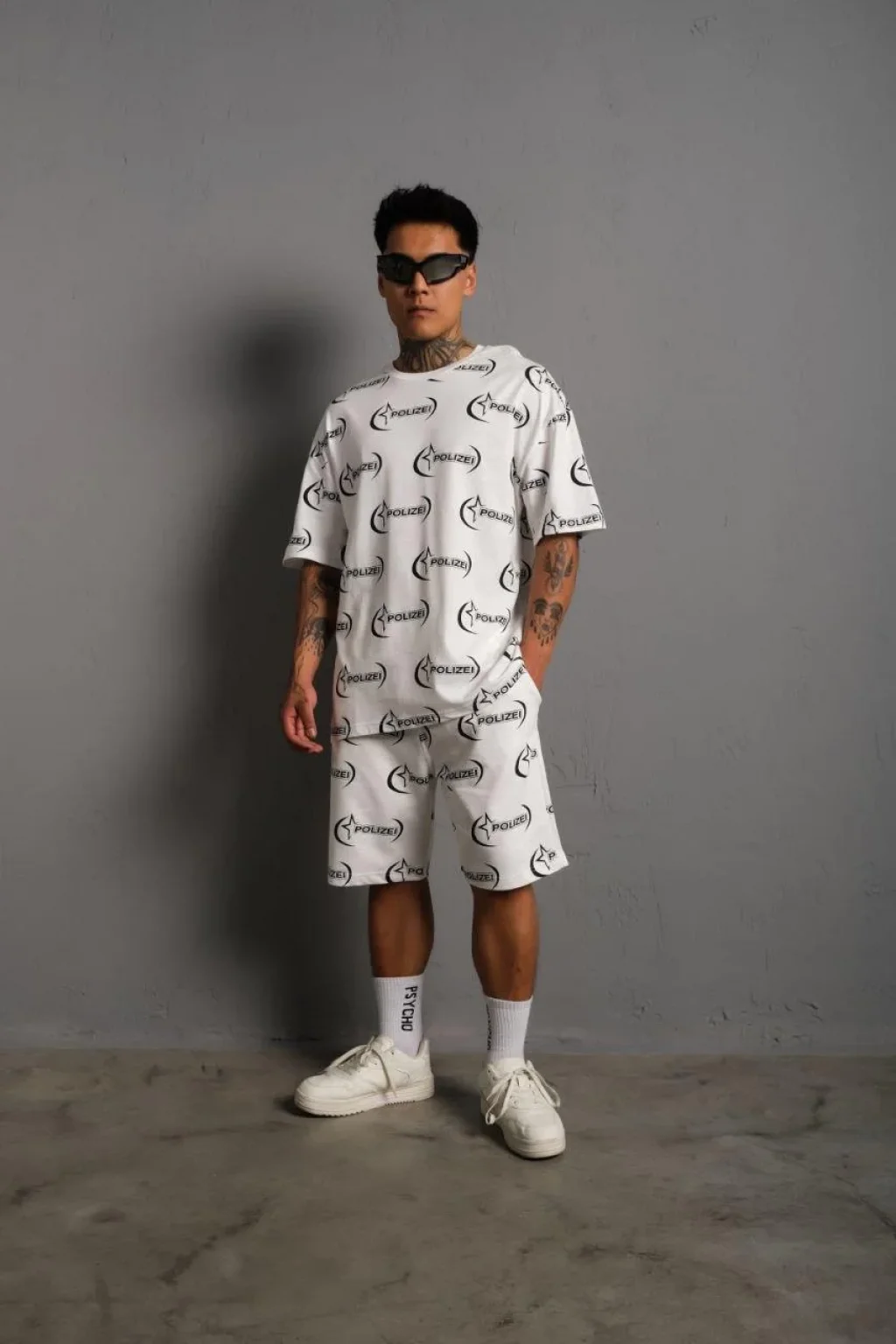 Erkek Baskılı İkili Şortlu Takım - Beyaz