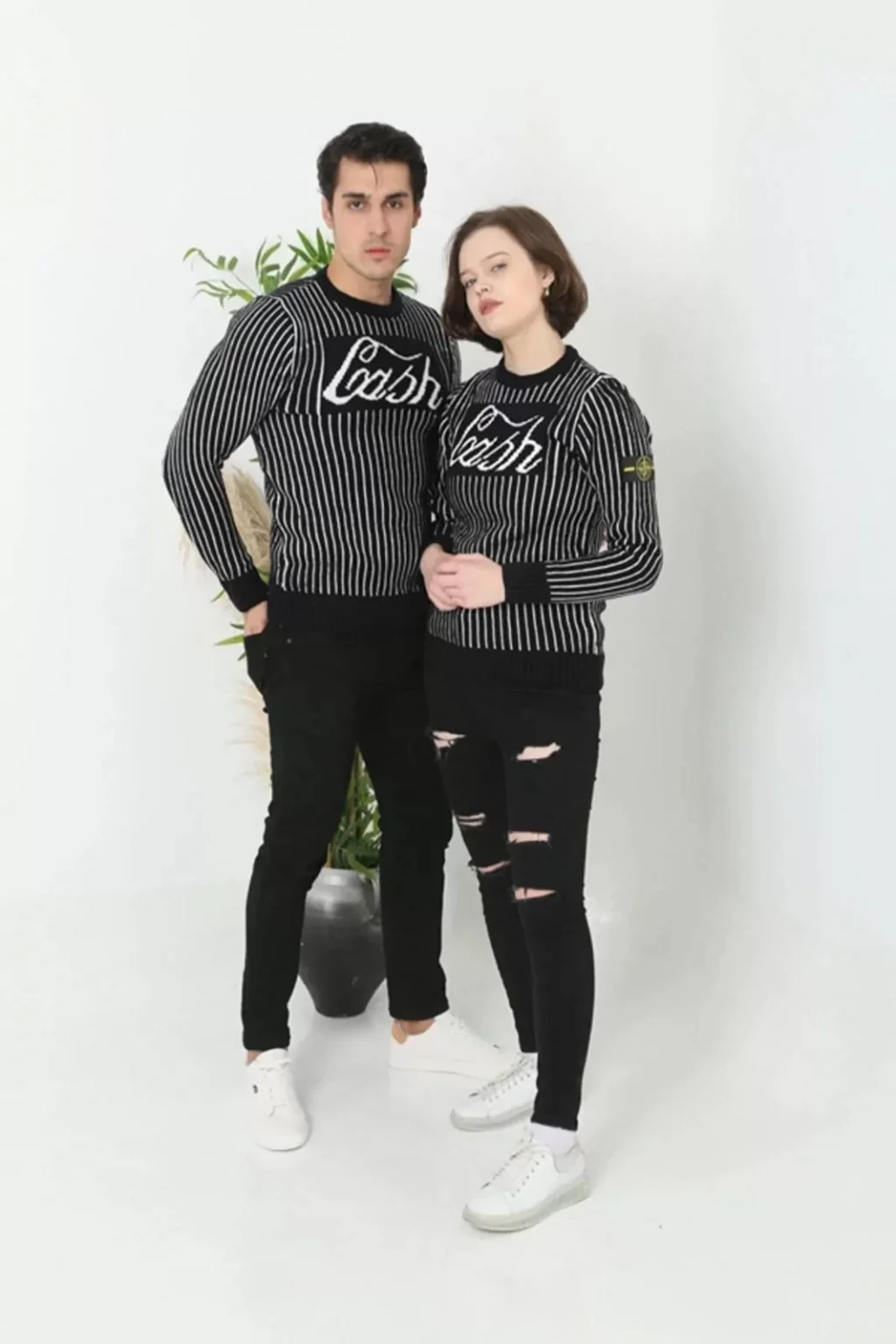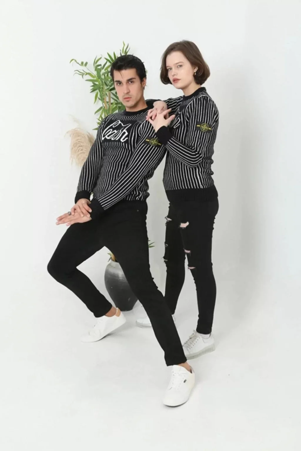 Erkek Bisiklet Yaka Yün Örmeli Triko Kazak - Siyah