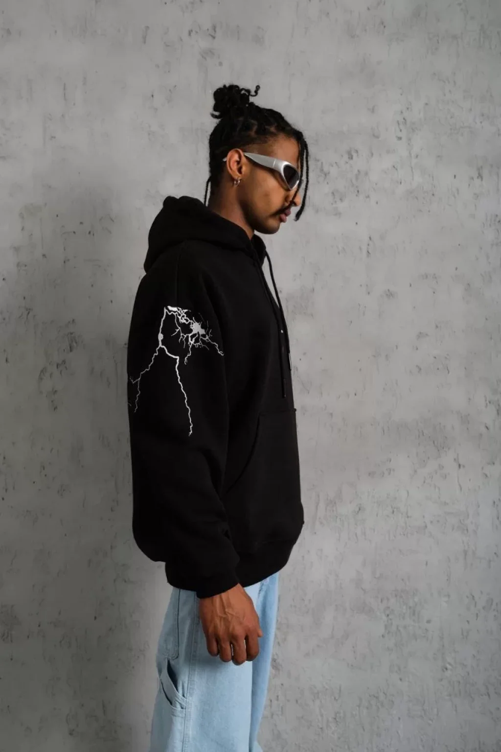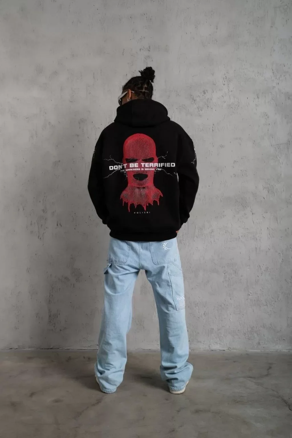 Erkek Maske Baskılı Kapüşonlu Sweat - Siyah