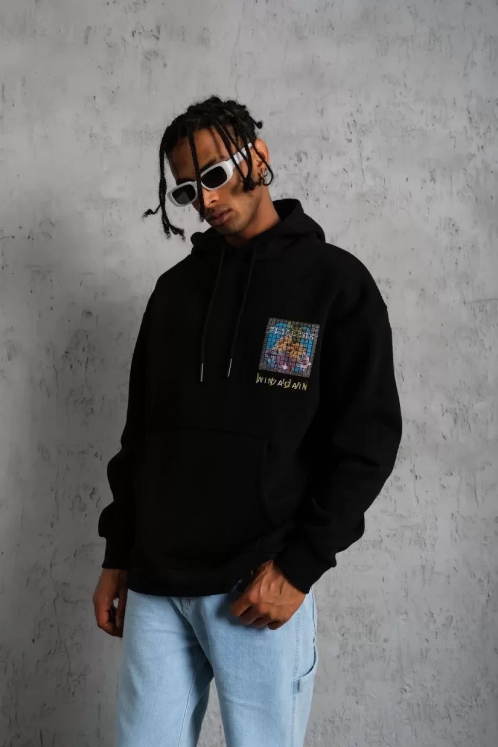 Erkek Patel Six Baskılı Kapüşonlu Sweat - Siyah