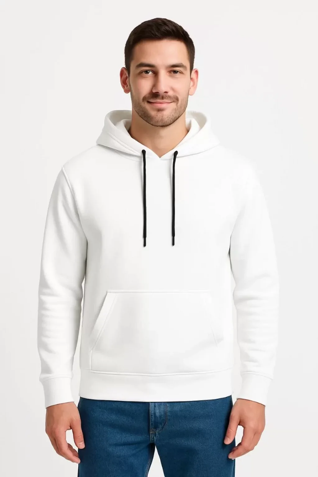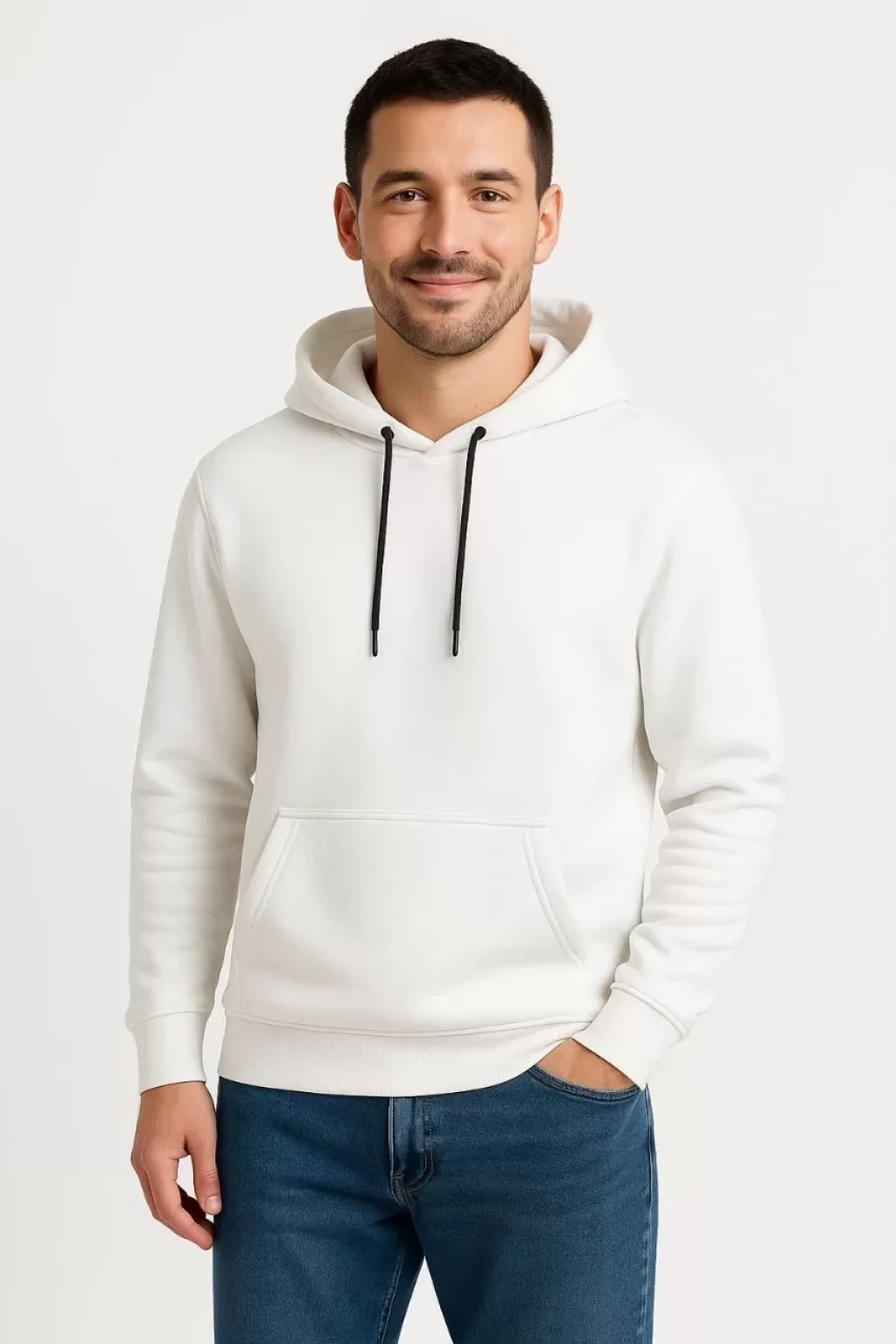 Erkek Üç İplik Kapüşonlu Kanguru Cepli SweatShirt hoodie - Beyaz