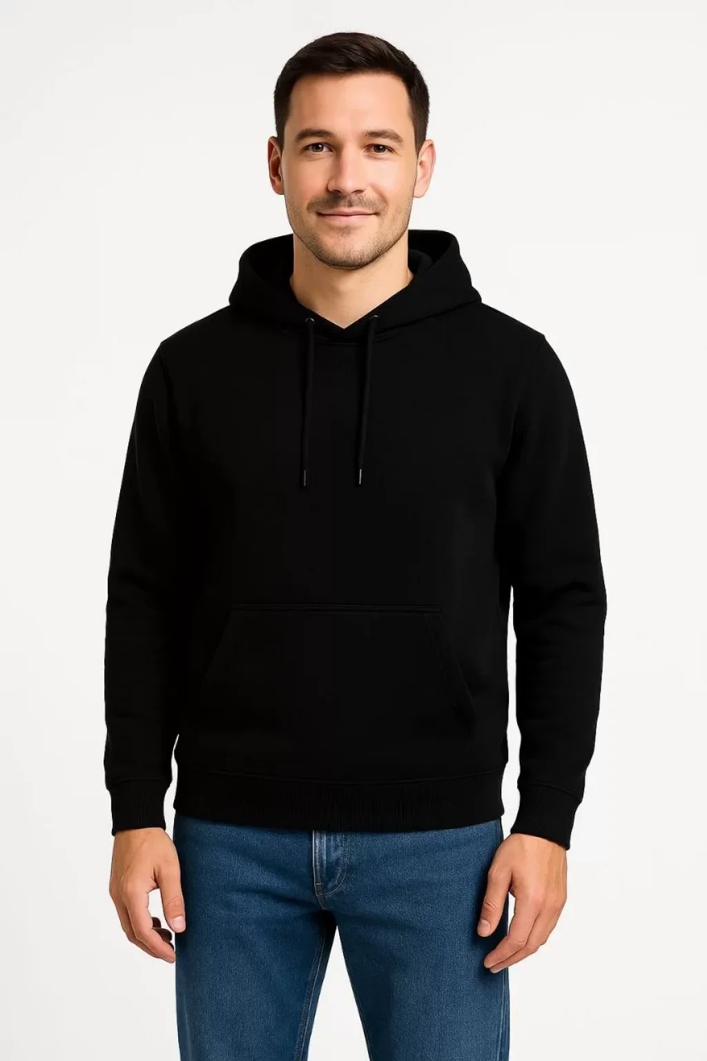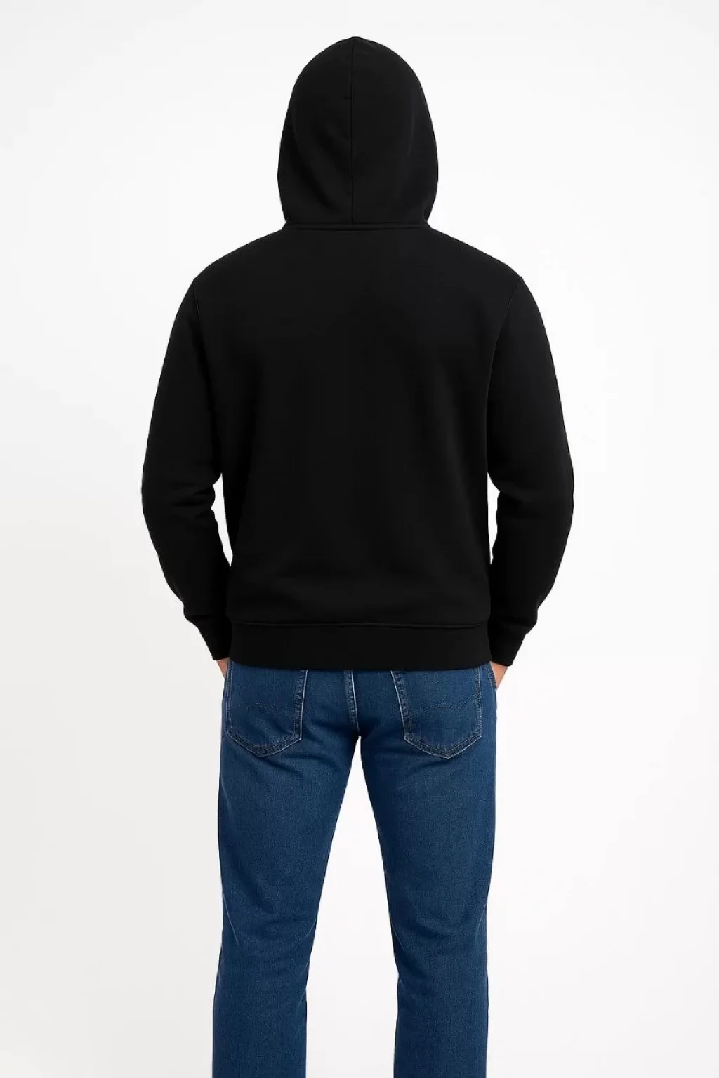 Erkek Üç İplik Kapüşonlu Kanguru Cepli SweatShirt hoodie - Siyah