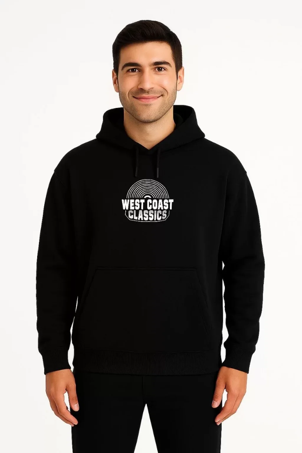 Erkek Üç İplik Kapüşonlu Ön ve Arka Baskılı SweatShirt hoodie - Siyah