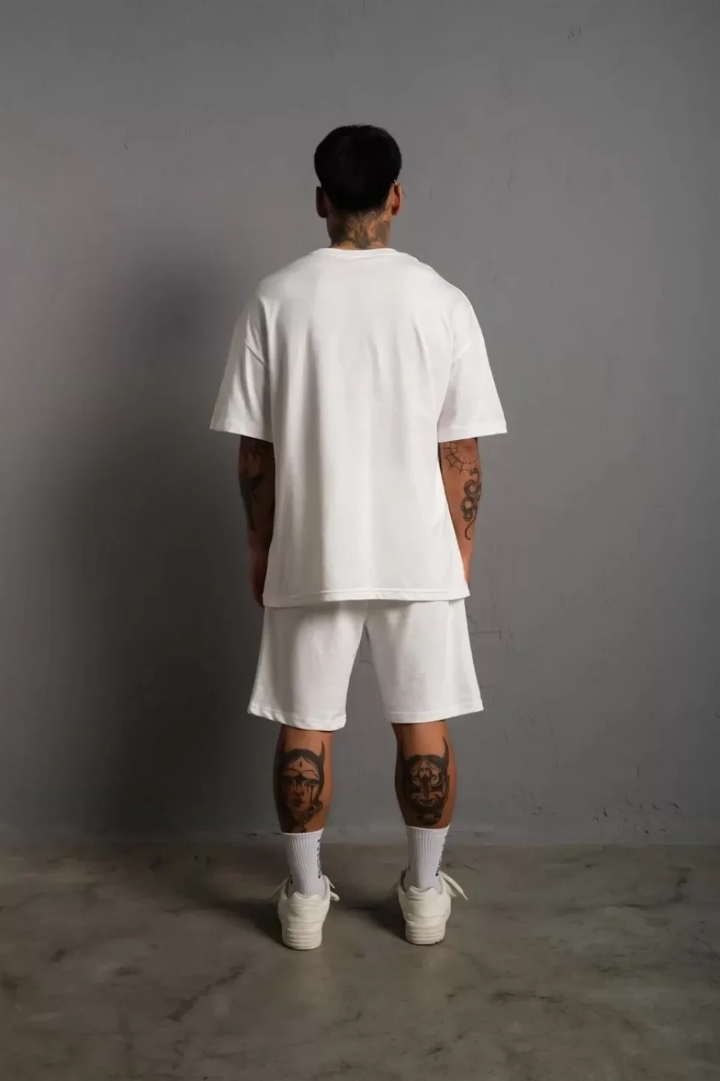 Erkek Alev Baskılı İkili Şortlu Takım - Beyaz