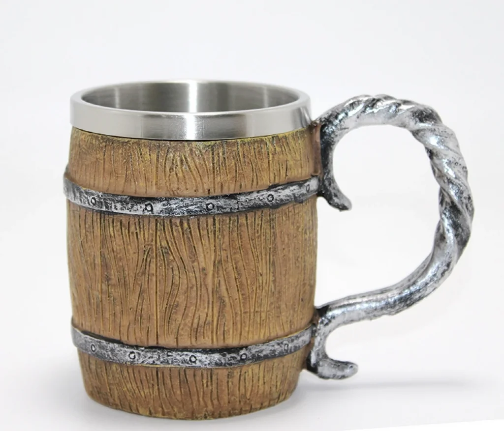 Fıçı Tasarımlı 3D Kabartmalı Paslanmaz Çelik Kupa Bardak