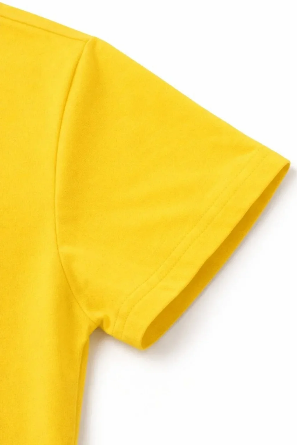 Genç Kız Çocuk V Yaka Tişört Yazlık Model Günlük Basic Body - Sarı