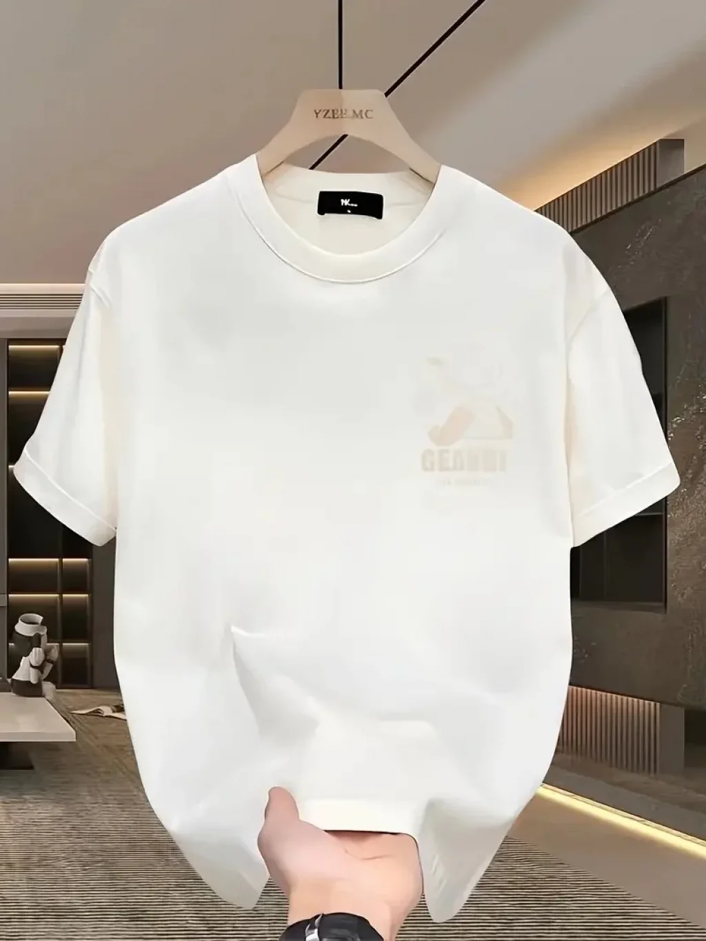 Geniş Kesim Pamuklu Tişört - "GANDHI The Project" Baskılı, Beyaz, Rahat Kesim, Kısa Kollu, Günlük Kıyafet, Her Gün Giyilebilecek Tişört- Beyaz