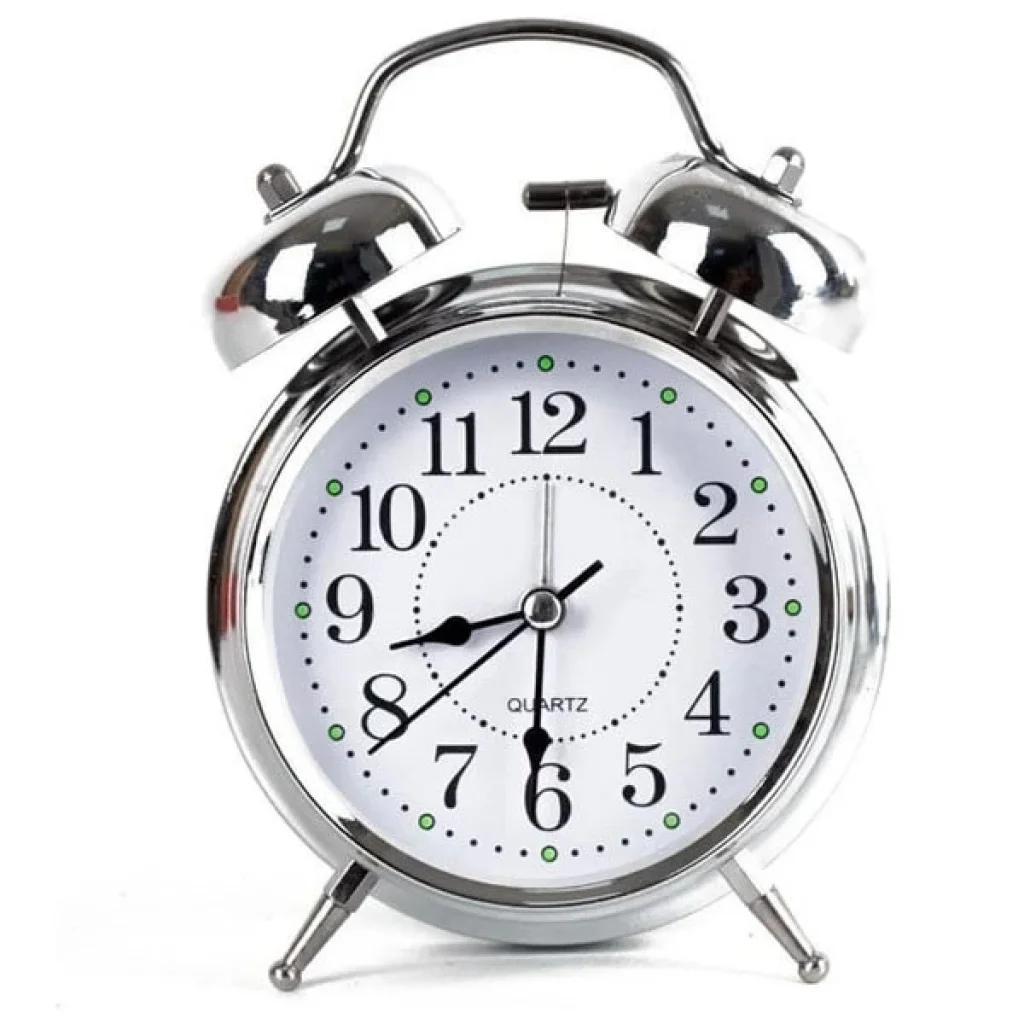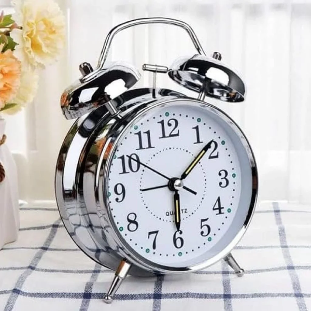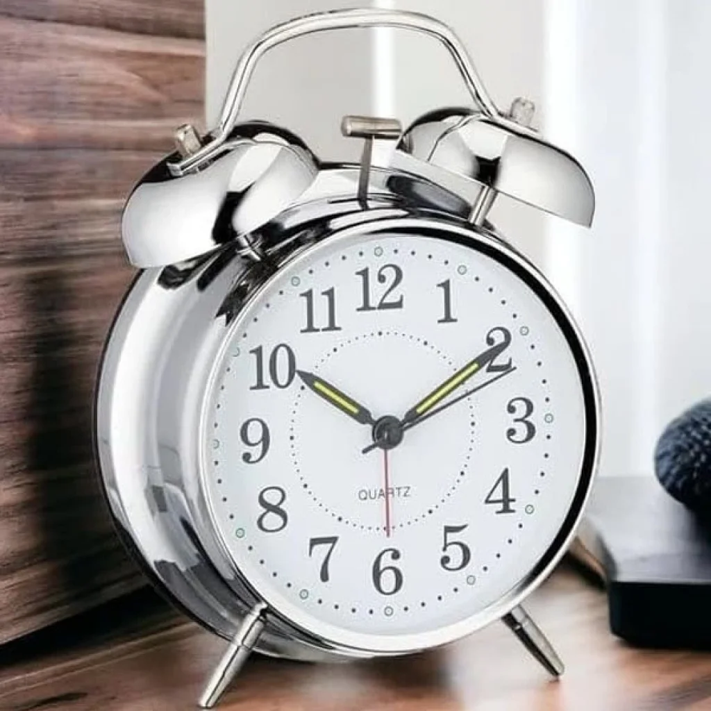 GÜMÜŞ RENK METAL ÇALAR MASA SAATİÜrün ÖzellikleriGümüş renk metal çalar masa saati, klasik tasarımı ve şık görünümü ile hem işlevsel hem dekoratif bir üründür. Dayanıklı metal gövdesi ve gerçek cam yüzeyi sayesinde uzun ömürlü kullanım sağlar. 11 x 3.81 x 16 cm ölçülerinde olan bu masa saati, kompakt yapısı ile her ortamda rahatça kullanılabilir. Güçlü zil sesiyle dikkat çeken alarm özelliği sayesinde sabahları kolayca uyanabilirsiniz. Ofis, yatak odası ve oturma odalarında hem dekor hem de pratik kullanım için idealdir.Paket İçeriği1 Adet Gümüş Renk Metal Çalar Masa Saati